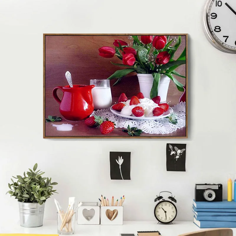 Алмазная вышивка 3D Алмазная живопись DIY Алмазная мозаика живопись Стразы чашка красная роза клубника Наклейка на стену
