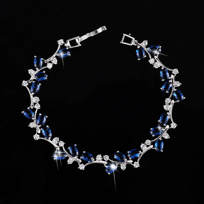 Браслет-цепочка Женский, серебристый, темно-синий, с фианитами