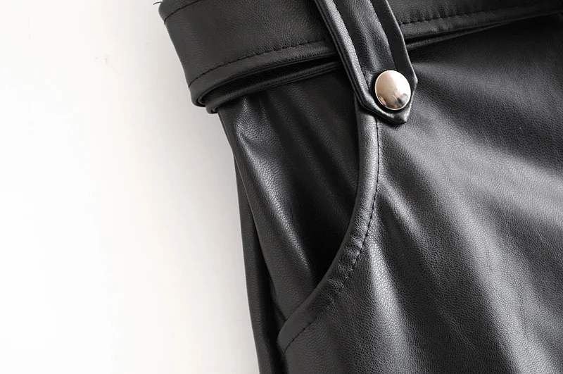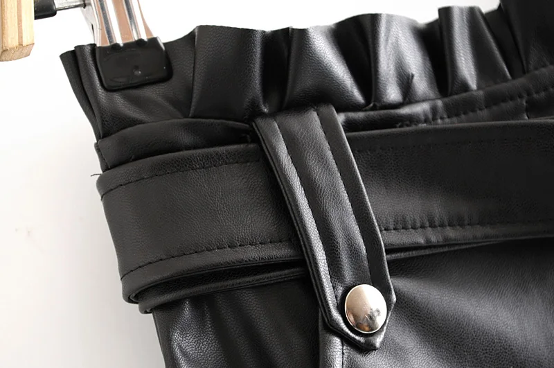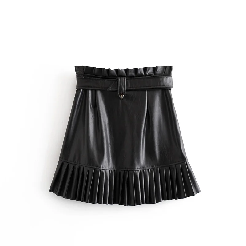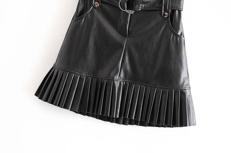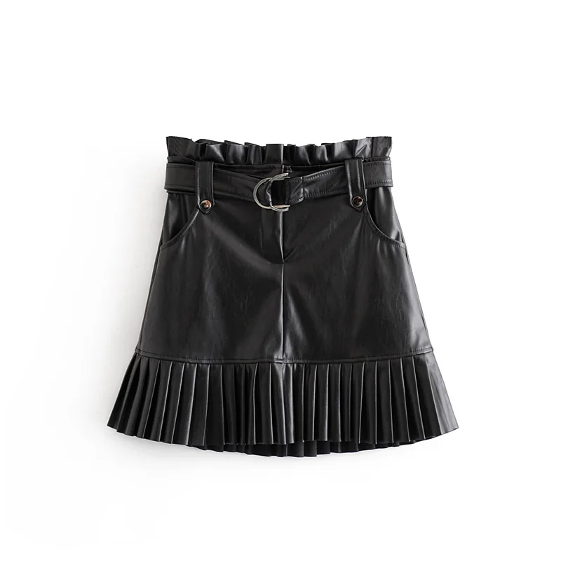 Женская плиссированная юбка из искусственной кожи, Элегантная черная вечерняя мини-юбка с поясом и высокой талией и карманами, Осень-зима 2021