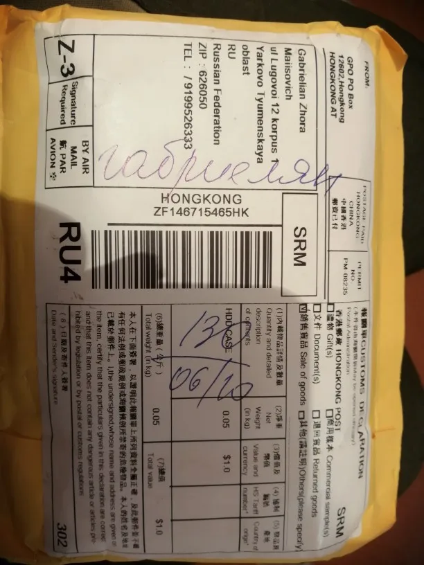 Страна: BG Color: USB3.0 HDD CASE Доставка: China Post Registered Air Mail 19.11.2020