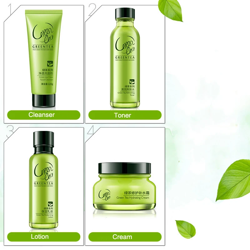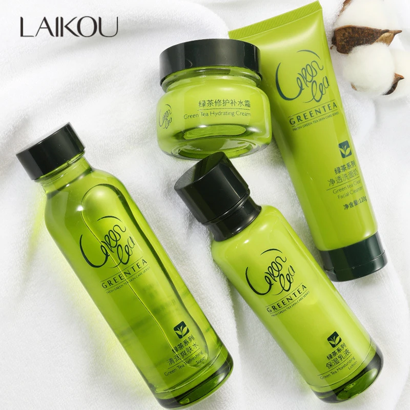 4 шт., набор для ухода за кожей с растительным зеленым чаем LAIKOU, увлажняющее очищающее средство для лица, восстанавливающий крем, набор для ухода за лицом