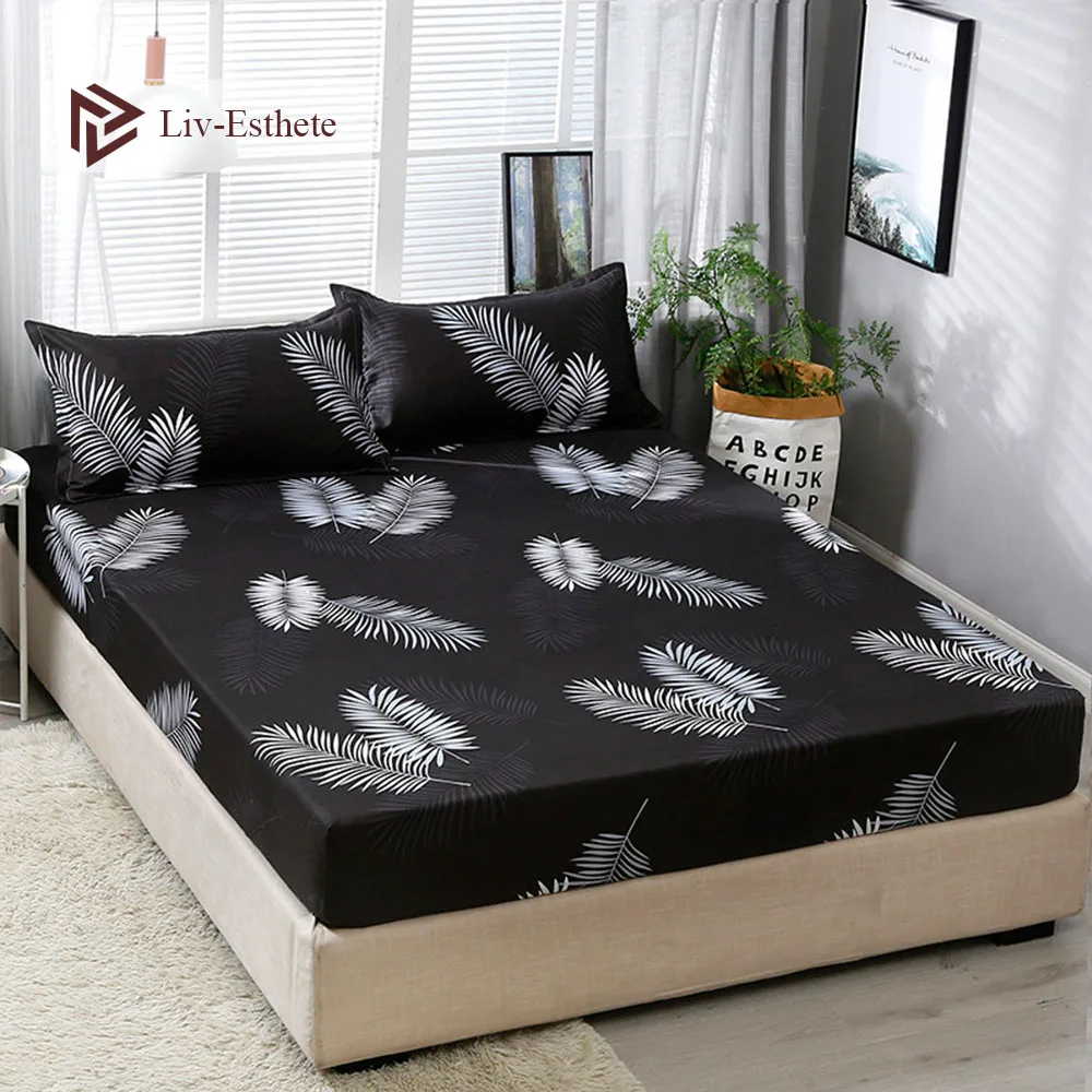 Liv-Esthete модный лист из полиэстера черного цвета с наволочкой, мягкий чехол на матрас, простыня из льна на резинке