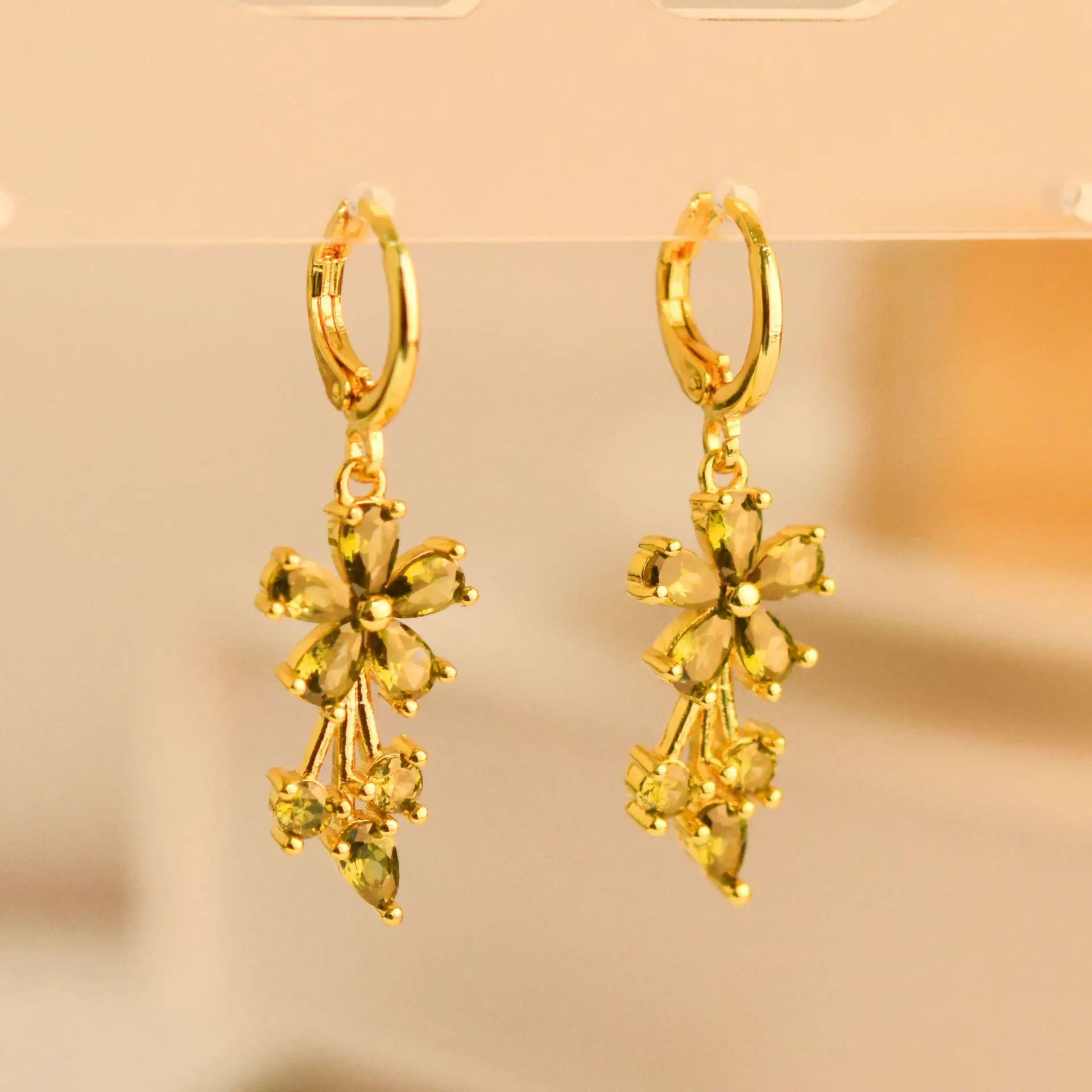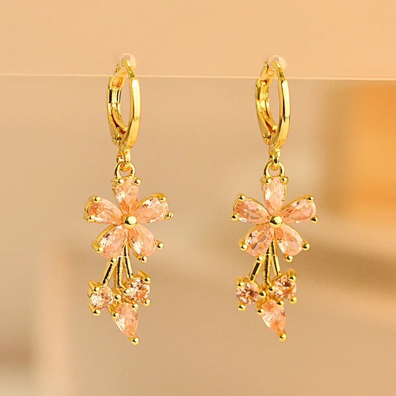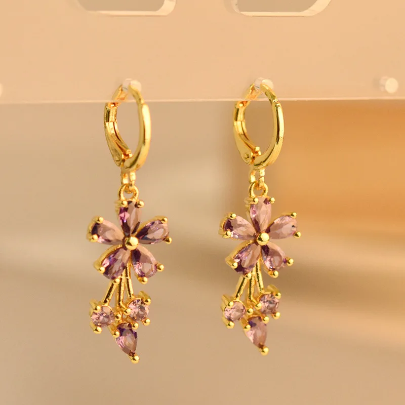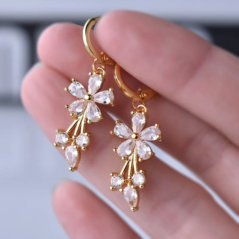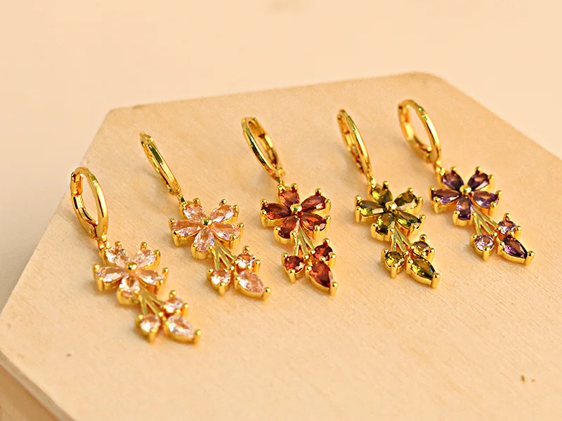Хит продаж, серьги в форме цветов с кристаллами, 5 цветов, серьги-подвески с фианитами и камнями для женщин и девочек, модные ювелирные украшения вечерние Ринок