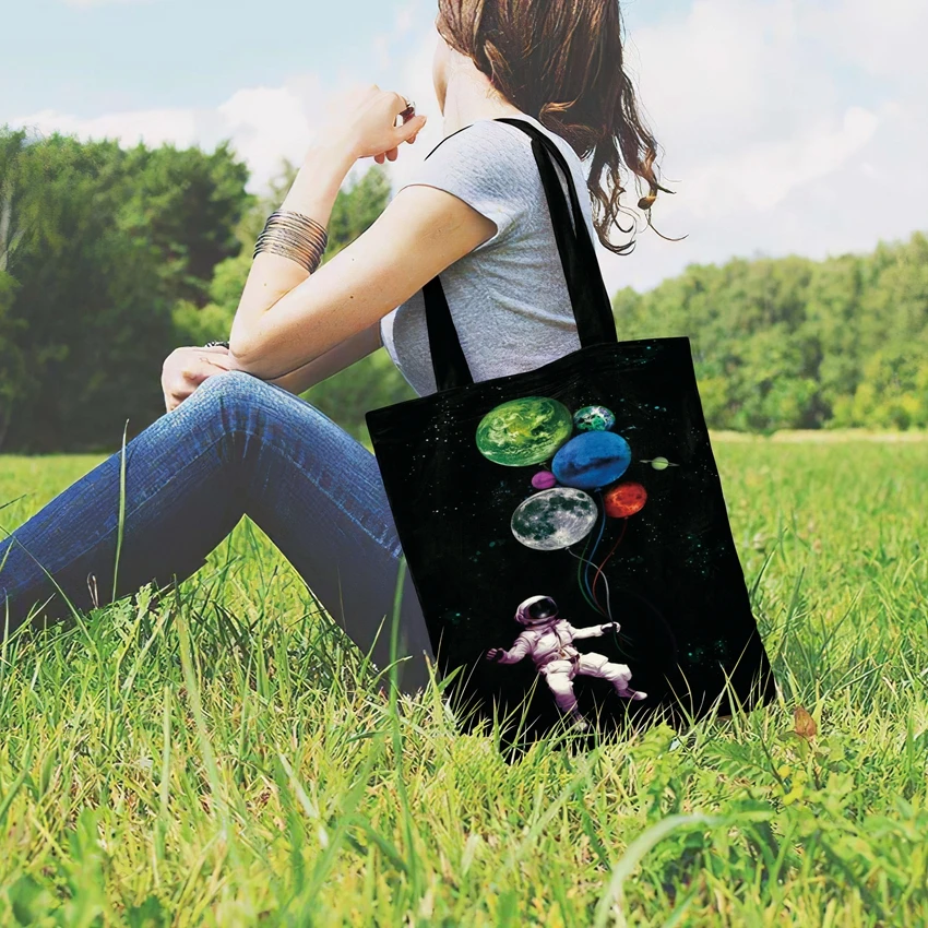 Модная Сумка-тоут с принтом I Love You To The Moon, льняная ткань, повседневная сумка-тоут, складная сумка для покупок, многоразовые пляжные сумки