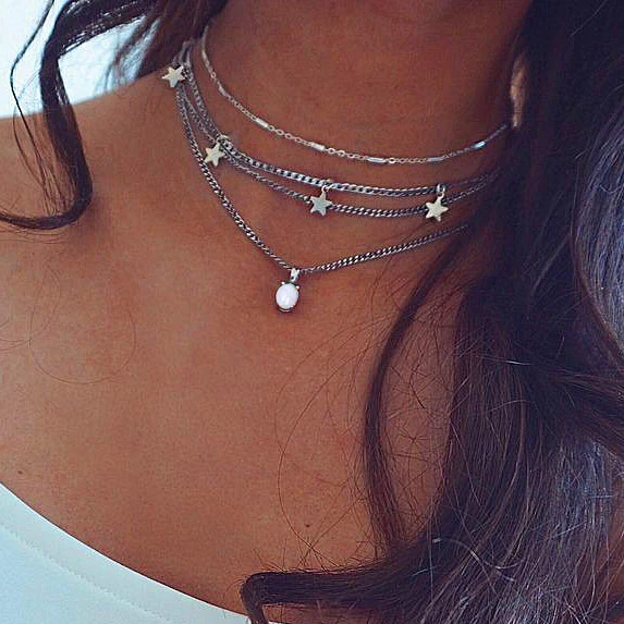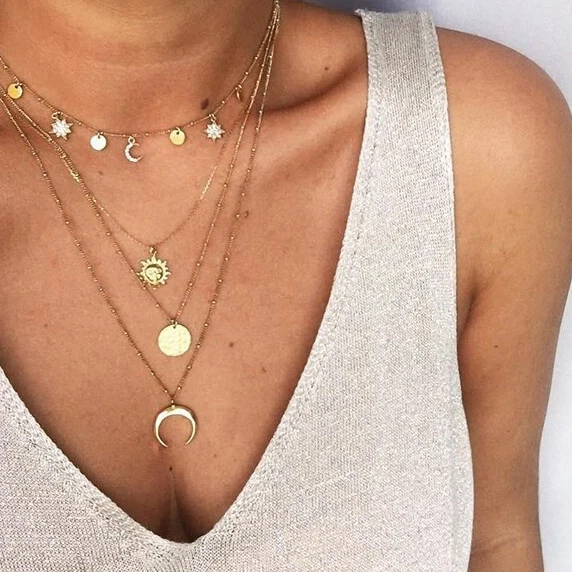 TypeMultilayer Moon Star Crystal Necklace