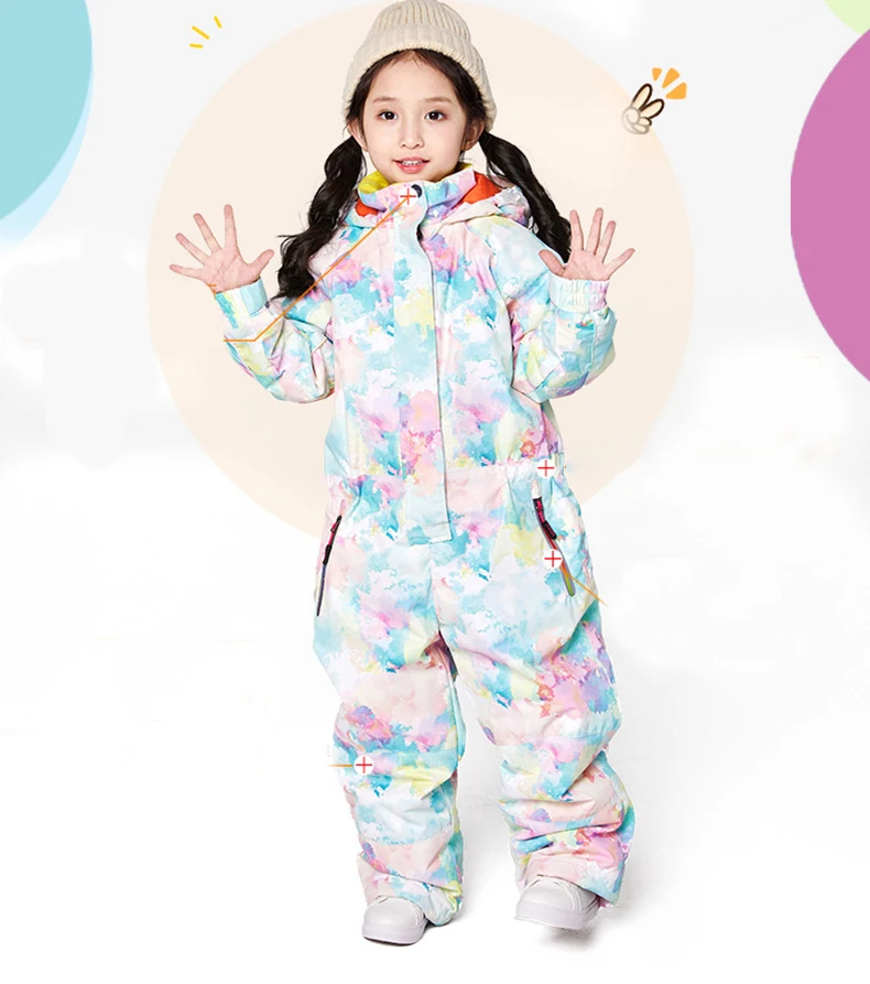 Детский комбинезон, лыжный комплект для девочек, сиамский водонепро...