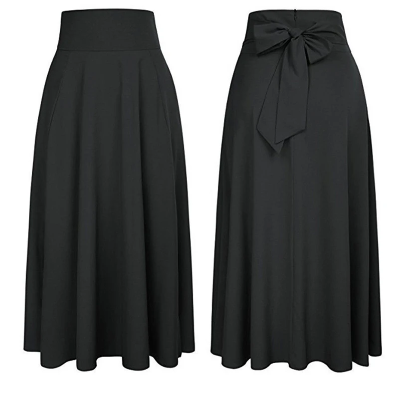 Женская Повседневная юбка с высокой талией, длинная винтажная юбка с бантом, модная плиссированная юбка для офиса, уличная одежда