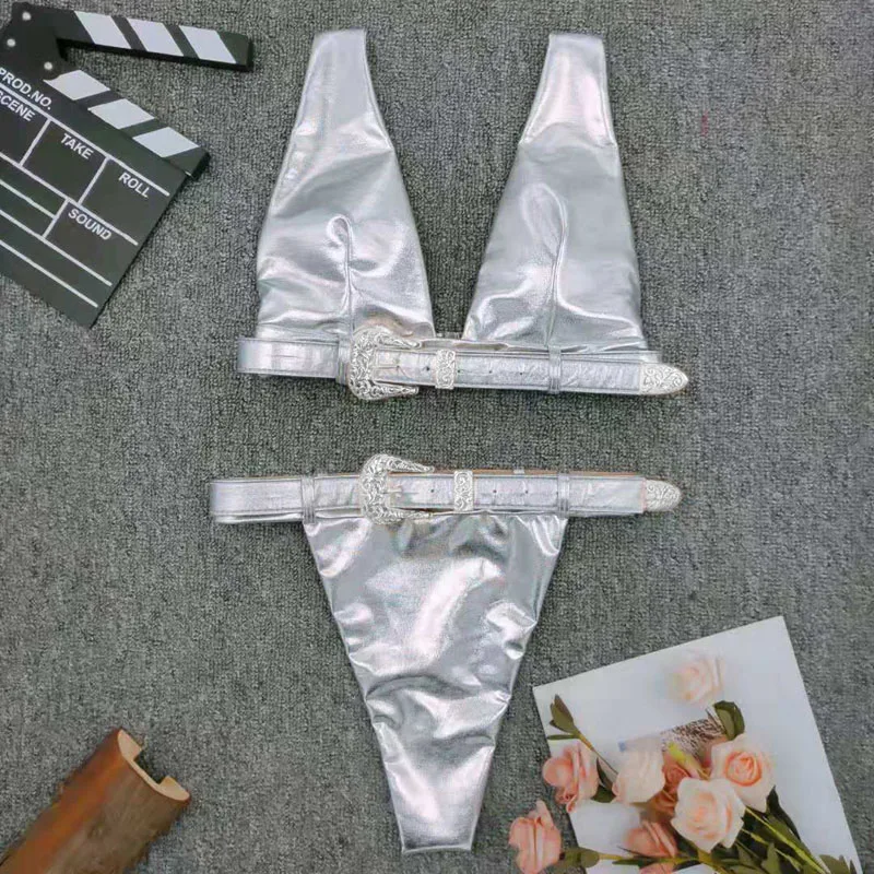 Купальник женский бикини с поясом с глубоким V-образным вырезом, пикантная купальная одежда в бразильском стиле, комплект бикини с высокой талией и вырезами