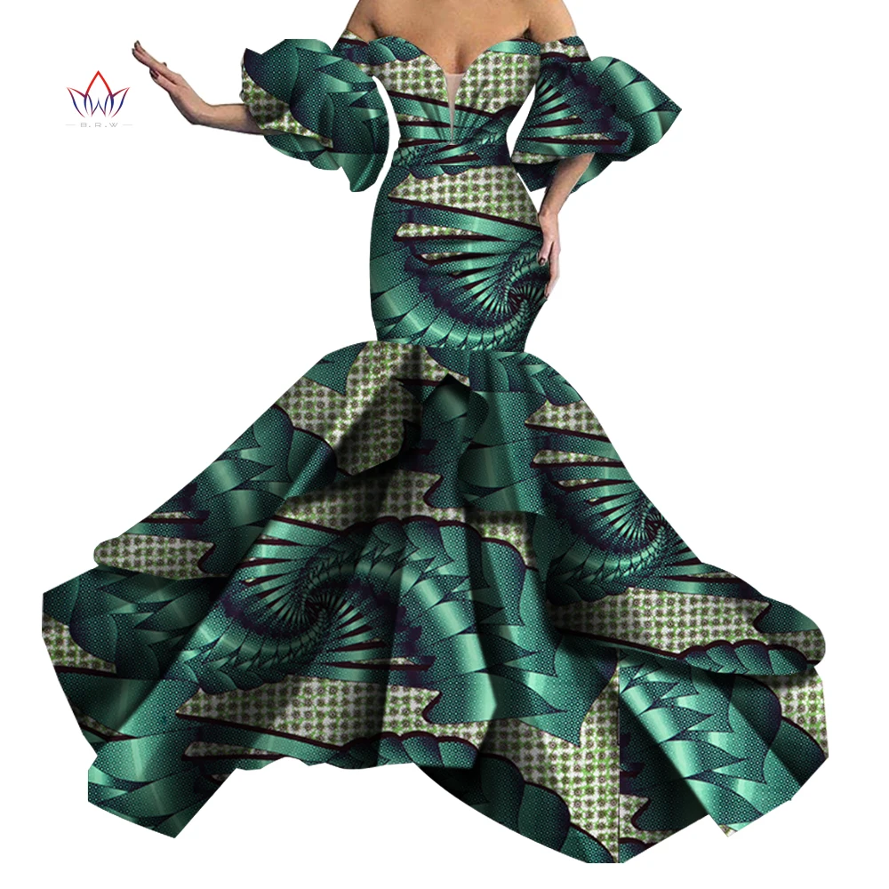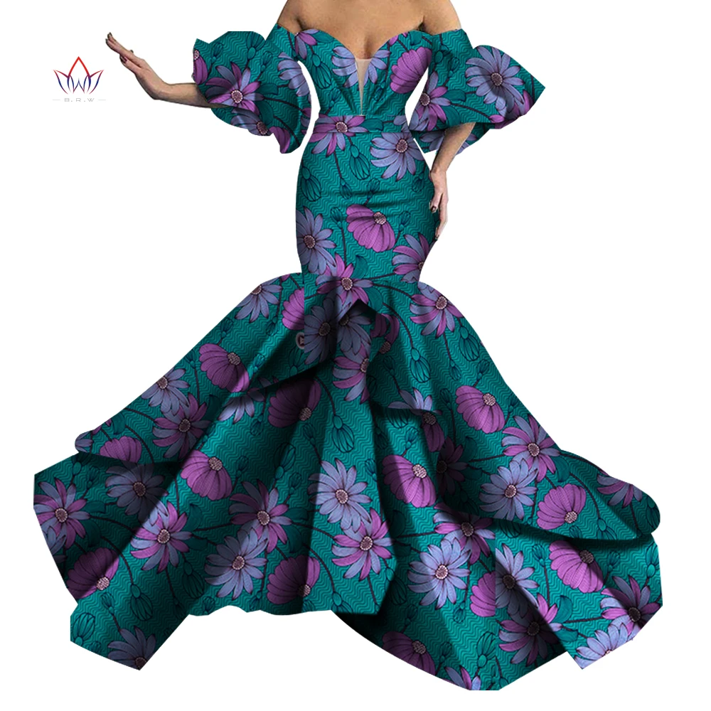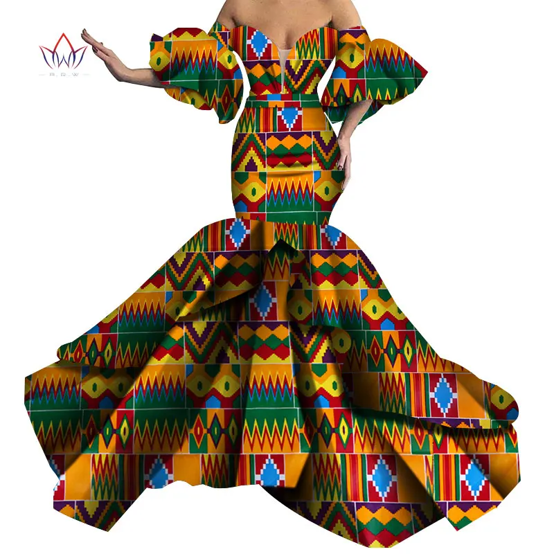 Женское вечернее платье без бретелек Bazin, Черное длинное платье с Африканским принтом, одежда в африканском стиле, WY5613, 2019
