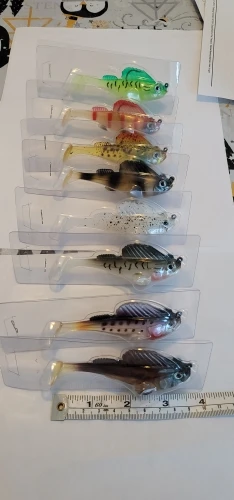 Красивые приманки, заказанные на 11/11 и доставленные на 23/11. 5 Блесен хорошо упакованы в правильный пластиковый блистер и 3 в более простой пластиковый пакет. Это делает хвосты согнутыми, как показано на картинке. В общем, хороший продукт и быстрая доставка. Я рекомендую этого продавца.