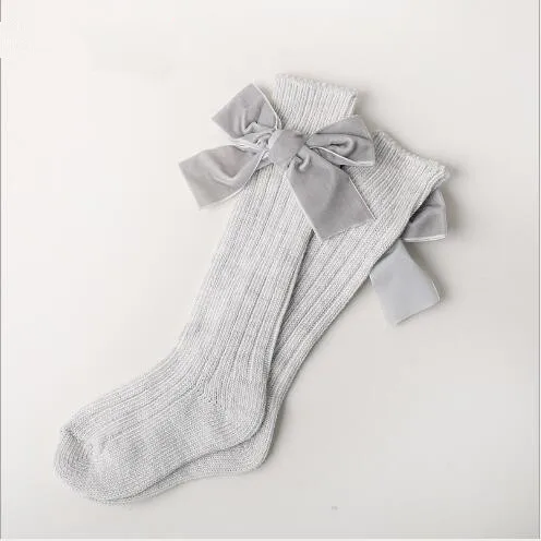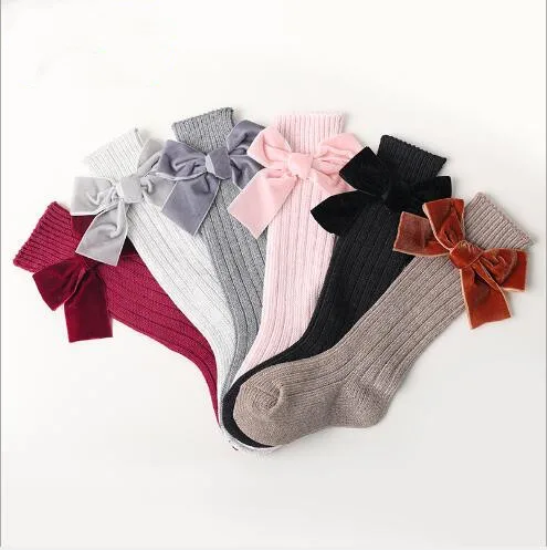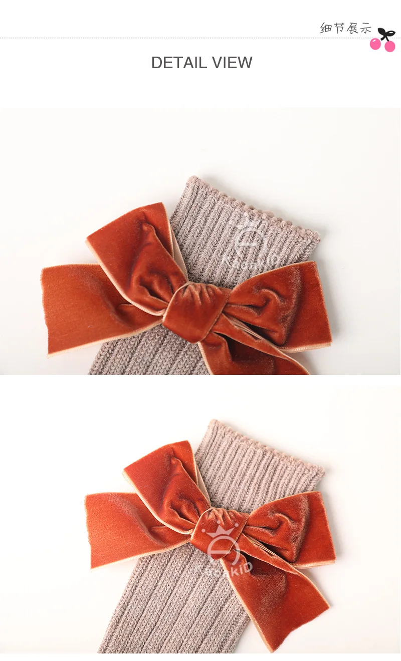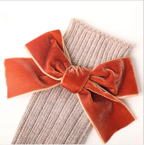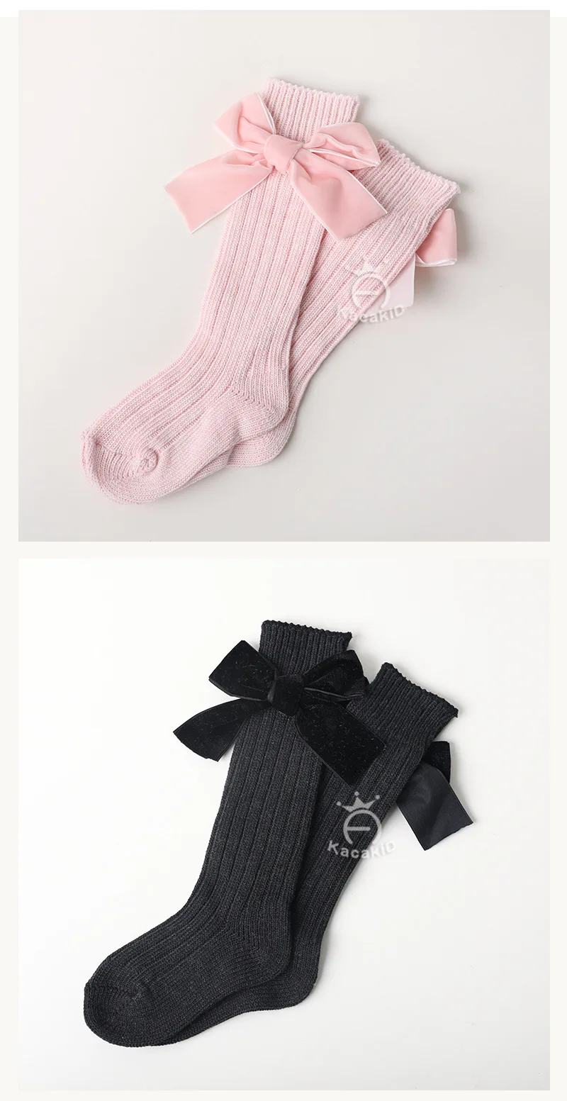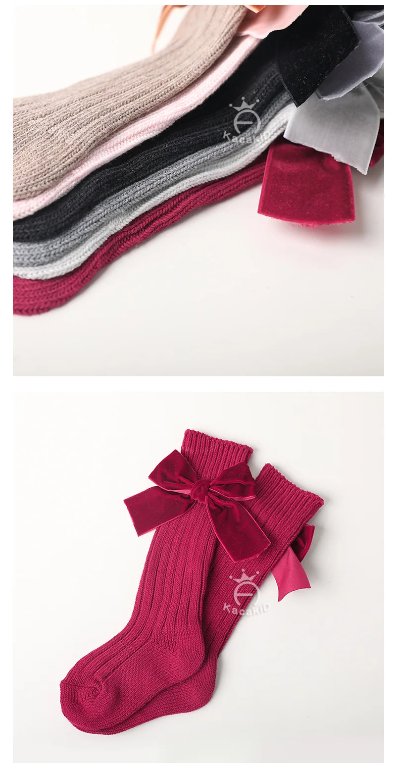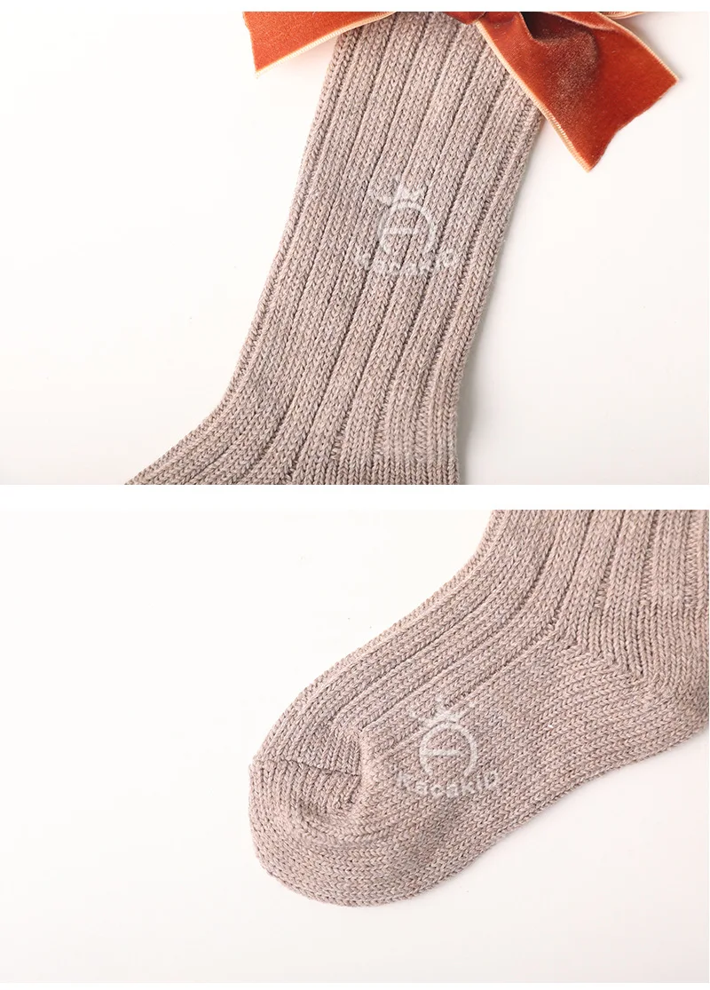 Зимние новые детские носки, толстые вязаные носки без пятки, теплые хлопковые носки для девочек, модные бархатные носки с бантом
