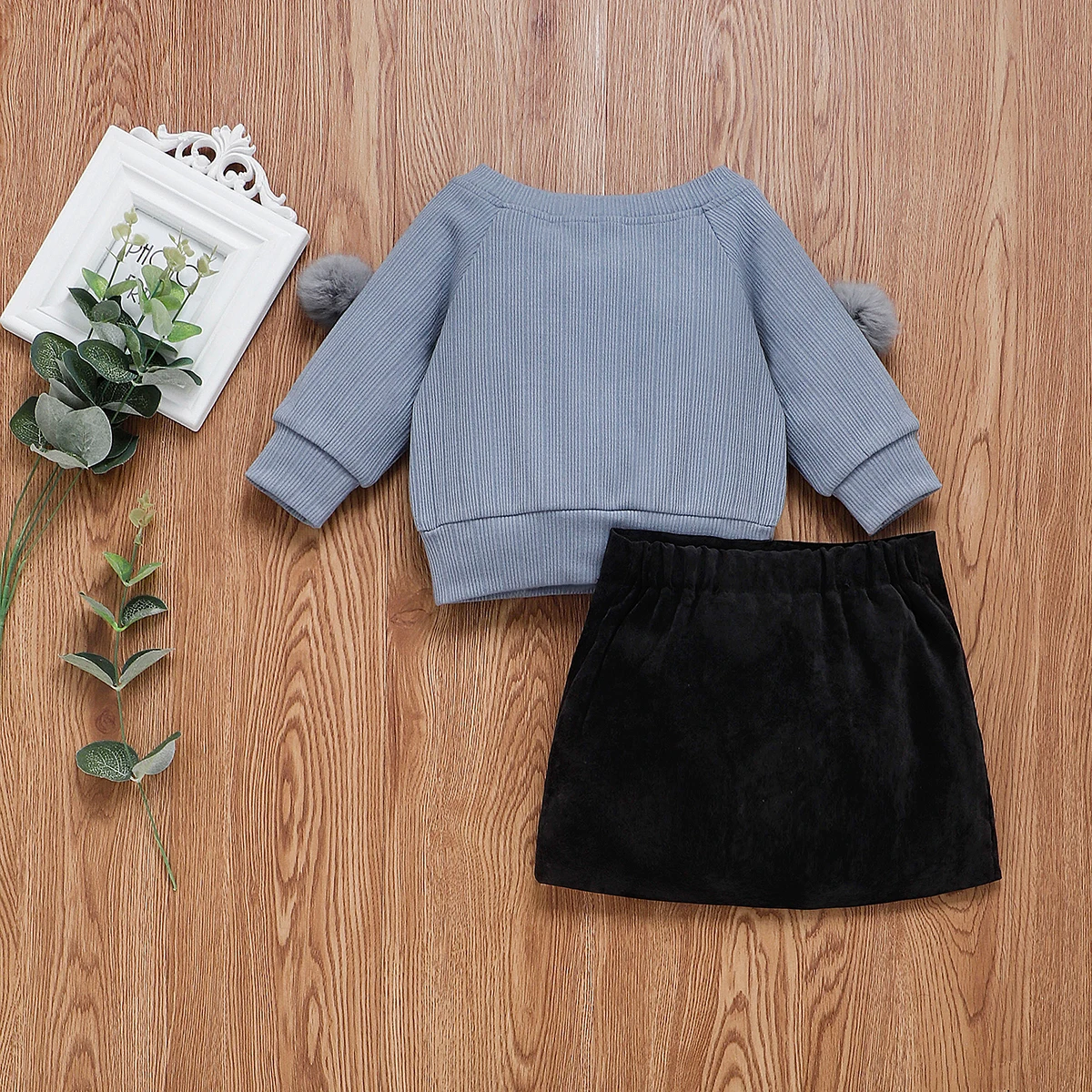 Комплект из двух предметов, Топ с длинным рукавом и пышная мини-юбка с помпонами, весна-осень 2019