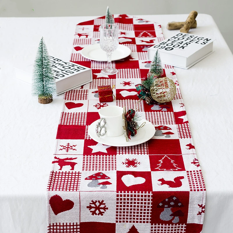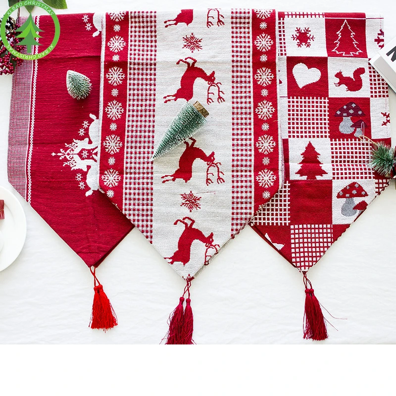 Вышитая клетчатая настольная дорожка с кисточками, Высококачественная хлопковая льняная настольная дорожка с принтом оленей, Настольная Обложка Рождественское украшение для дома