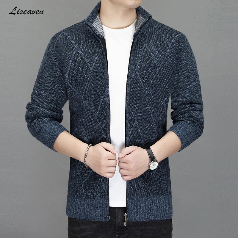 Мужской теплый кардиган Liseaven, трикотажный жакет с воротником-стойкой, теплая куртка для зимы