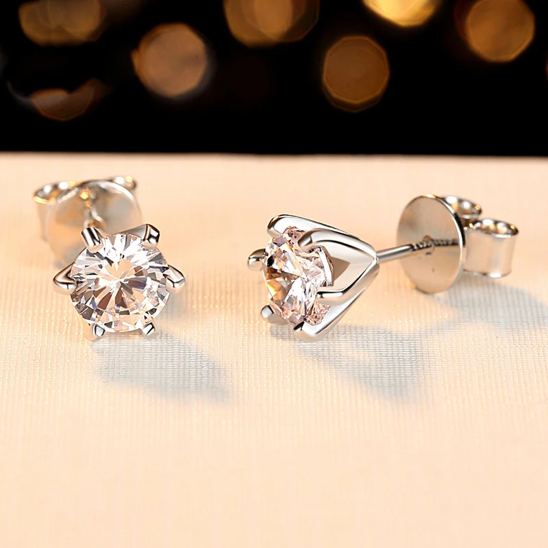 Женские серьги-гвоздики с бриллиантами BOEYCJR S925, 6 когтей, 0,51...