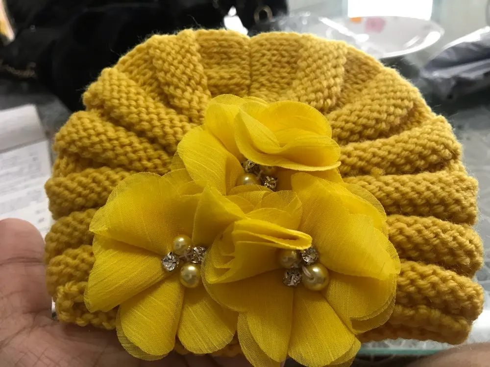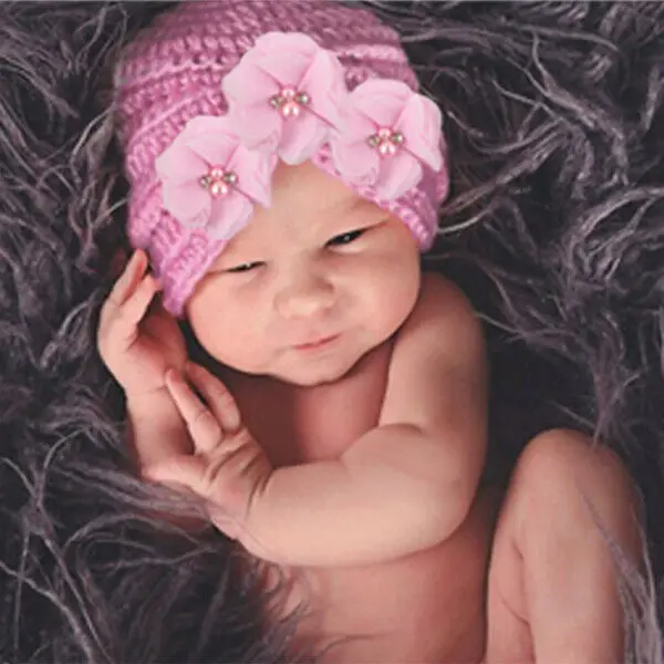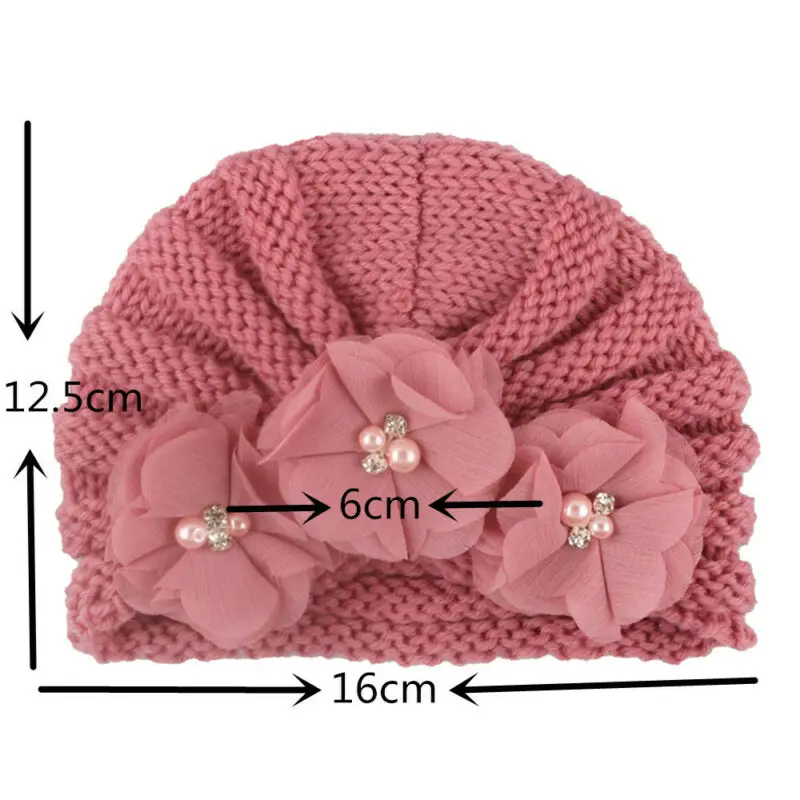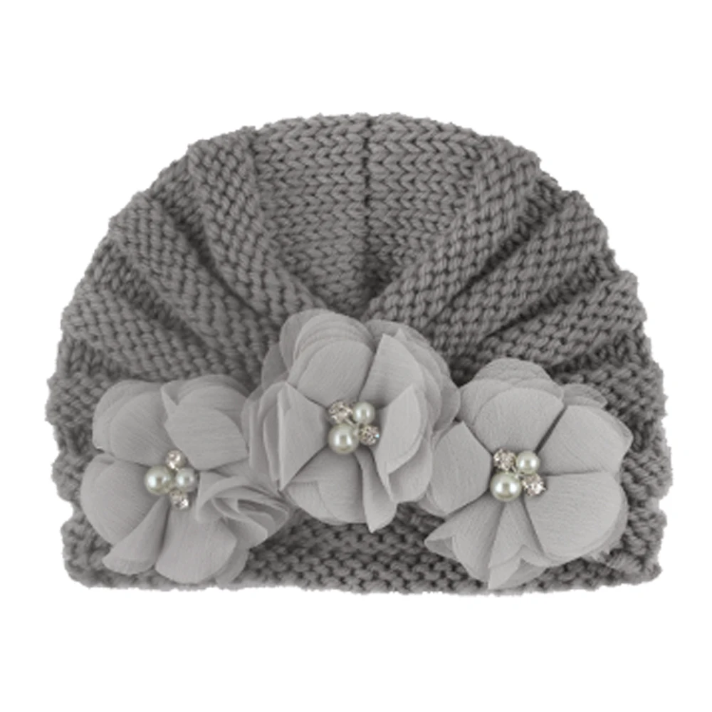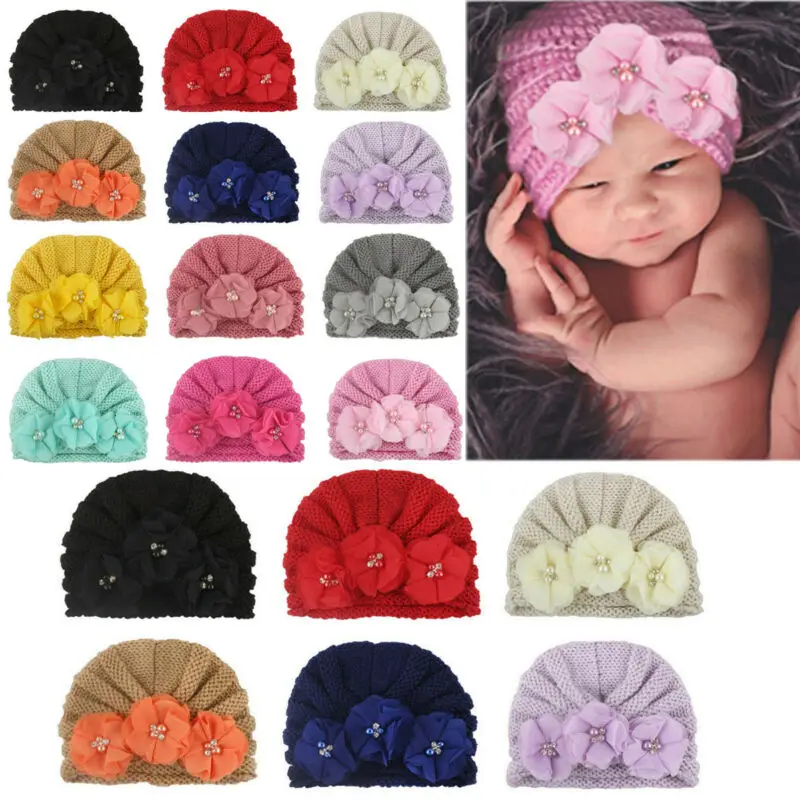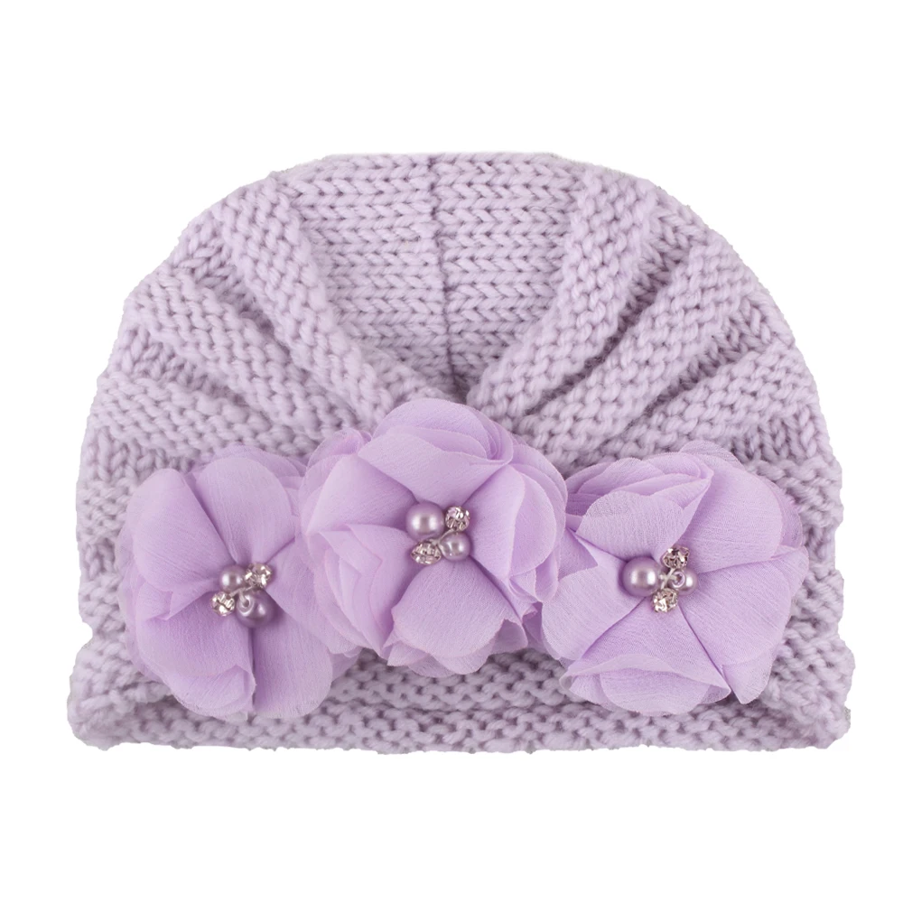 2019, Детские аксессуары, одежда, Зимняя Шапка-бини для маленьких девочек и мальчиков, теплая шапка с цветами, вязаная крючком шапка с жемчугом, тюрбан