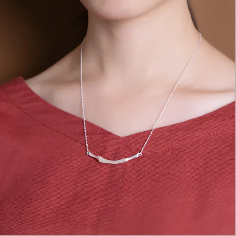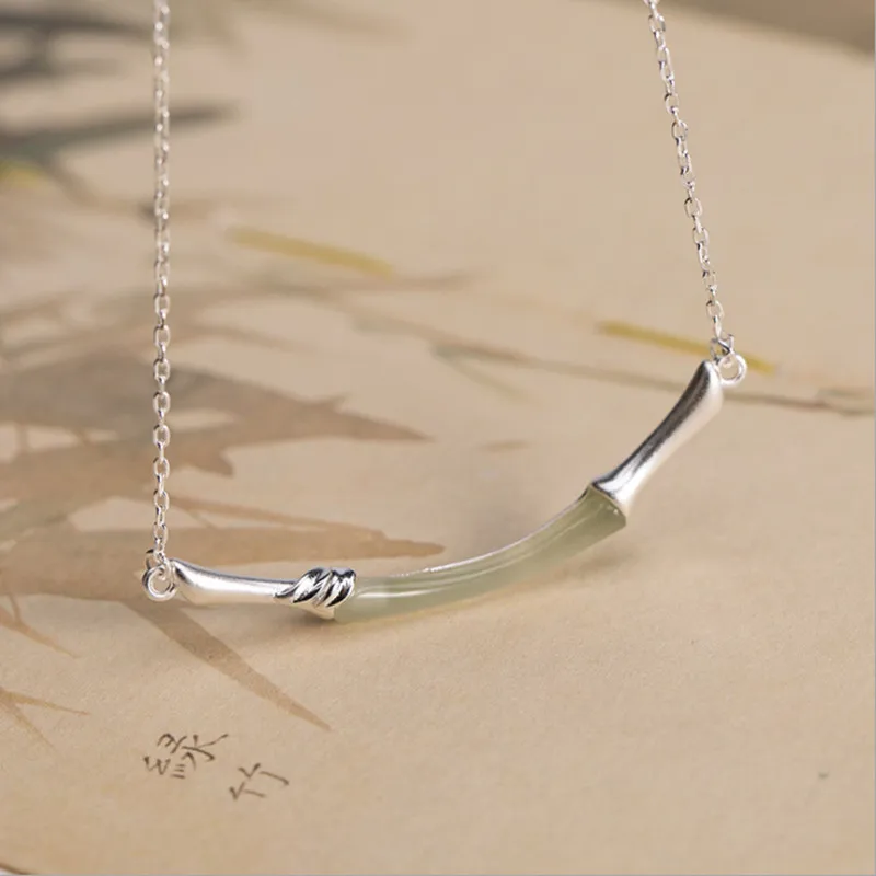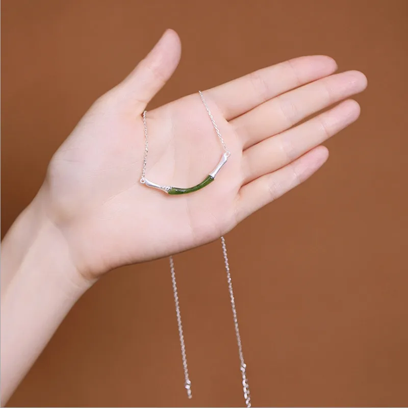Женское Ожерелье-чокер из натурального зеленого нефрита и бамбука, колье с узором в виде листика и цепочкой из натурального серебра 925 пробы, бижутерия P1040