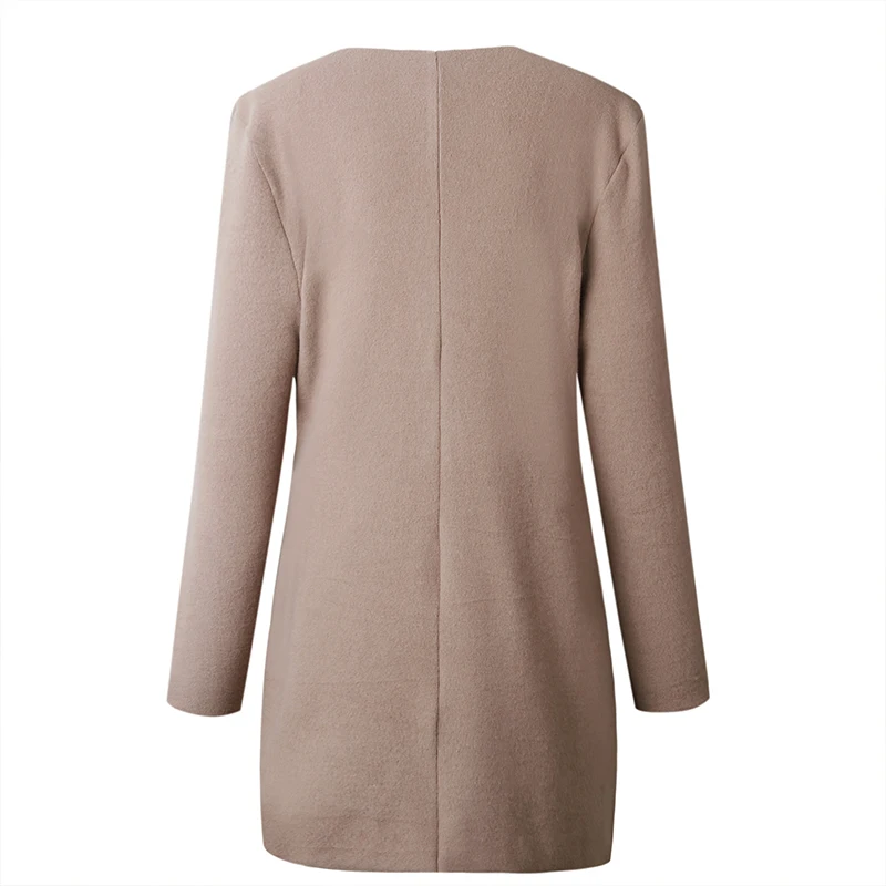 Осень Зима Новая женская однотонная куртка тонкая шерсть v-образный Вырез Пояс длинный рукав повседневное пальто тонкий офисный костюм верхняя одежда