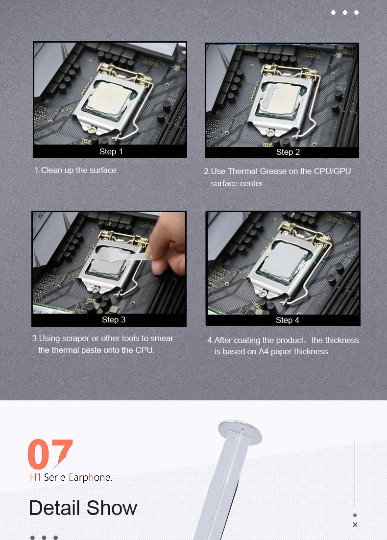 Продукт выглядит очень хорошо, но немного разочарован: не потому, что он имеет некоторые дефекты, но потому, что это не хладагено как пастообразный термальный оригинал, который был применен магазином, купил мой компьютер (может быть, потому что приложение, которое использовалось, это было распределено продукт), но было очень близко, Разница в 1 ° C теплее (почти всегда, когда компьютер ничего не делает). Приложение немного жесткое, но никаких рисков, кроме грязных, и конечного использования слишком продукта. Рекомендуется.
