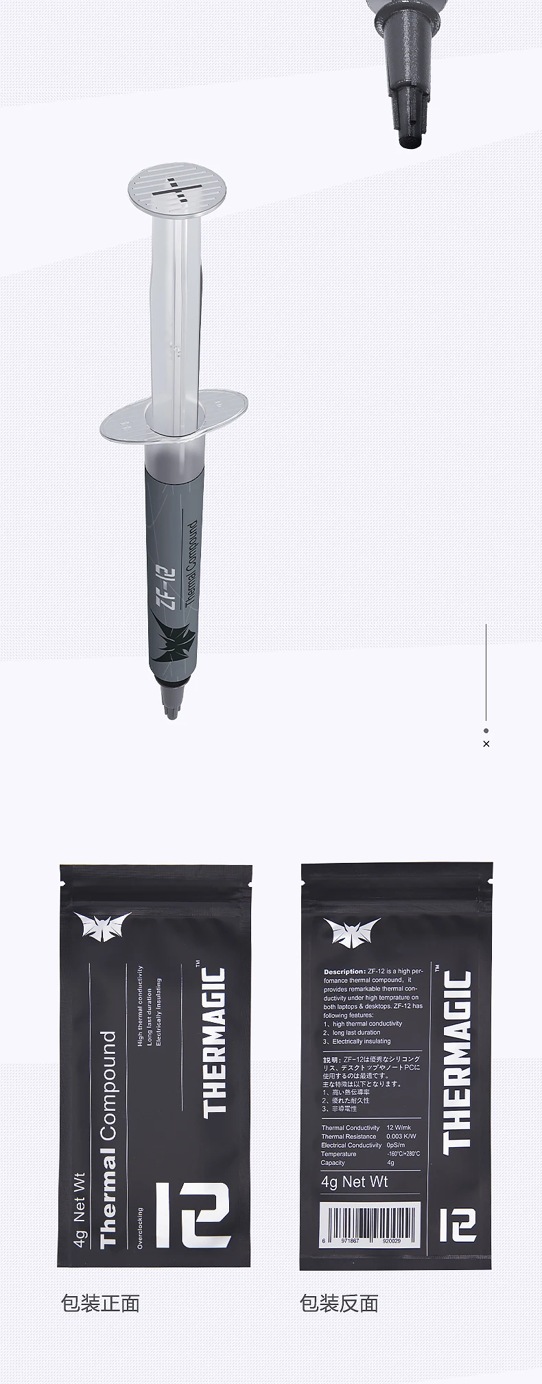 Термопаста ZF-12, 12 ВтмК, силиконовая, для охлаждения процессора, GPU, чипсета, ноутбука