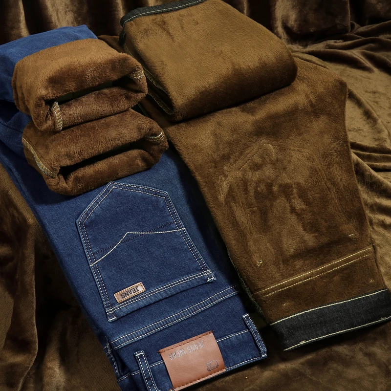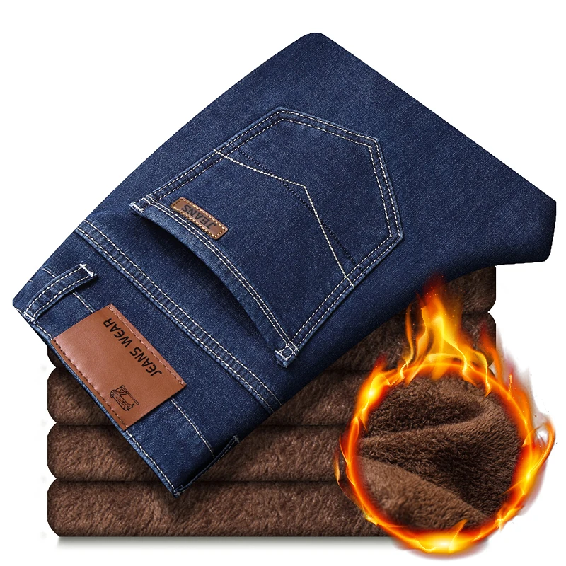 Мужские зимние джинсы, черные зауженные эластичные плотные вельветовые брюки, теплые джинсы, повседневные флисовые брюки для мужчин, 2020