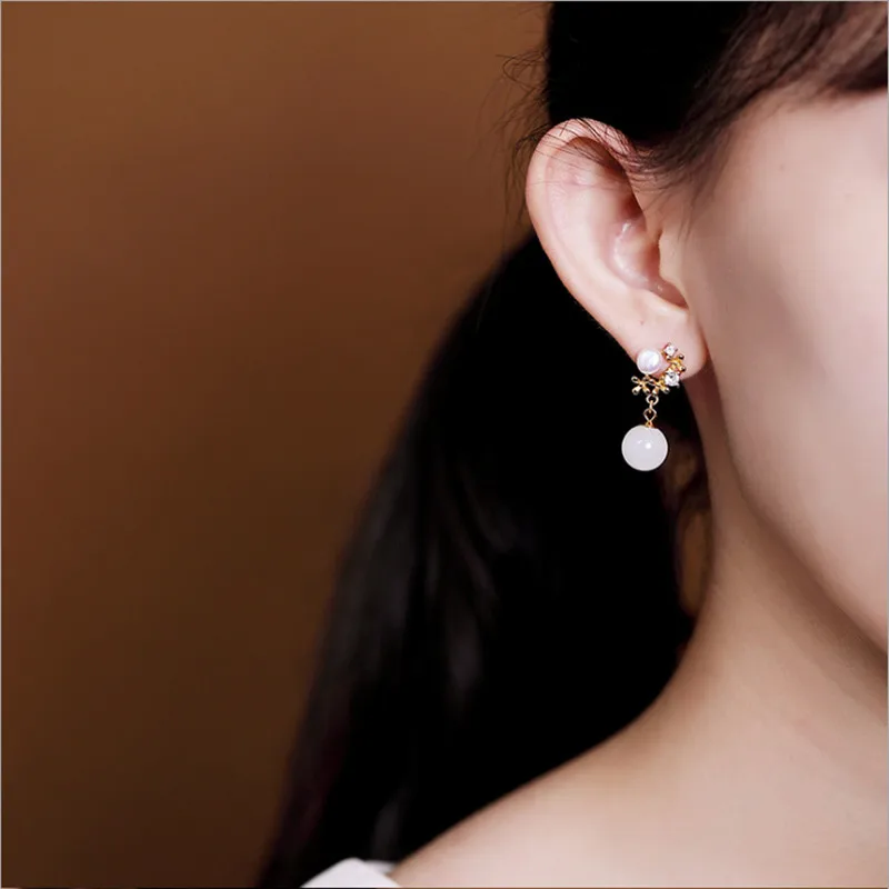 Женские серьги из серебра 100% пробы, с натуральным нефритом
