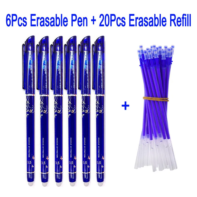 DELVTCH 0,5 мм 6 + 20 шт.компл. стираемая ручка с заправляемым стержнем стержень цвет синий, черный; Большие размеры стираемые чернила для гелевой ручки для школы и офиса письменные приборы