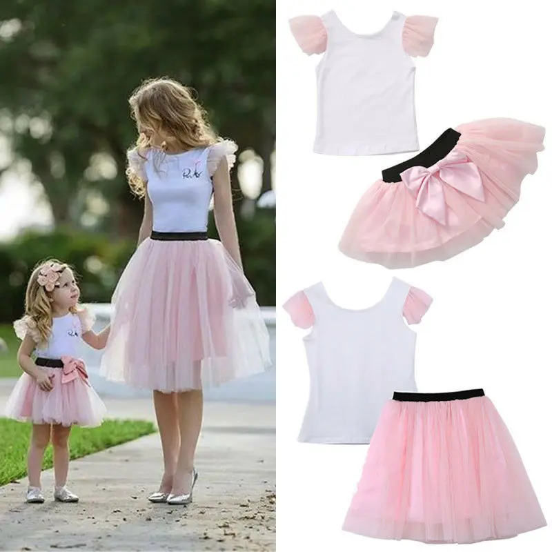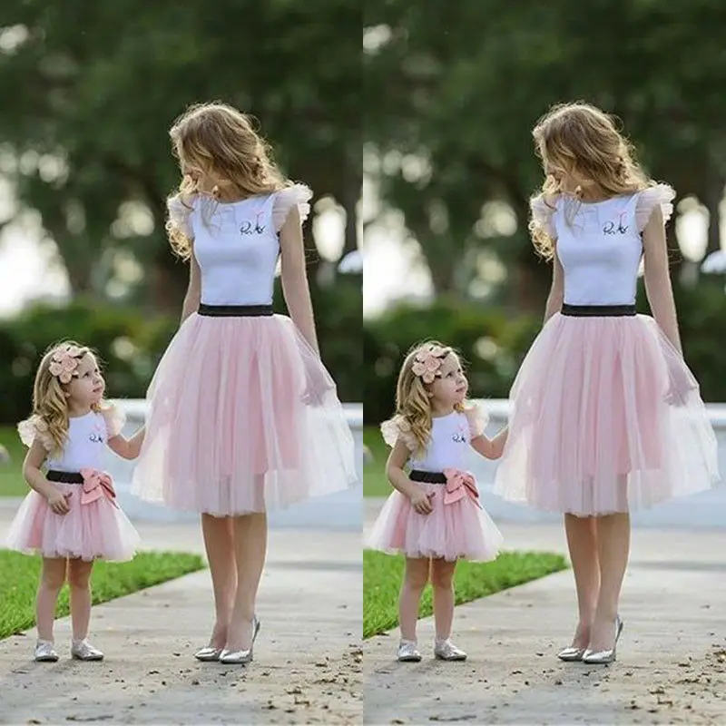 FOCUSNORM летний модный Семейный комплект одежды из 2 предметов для женщин девочек детей кружевные топы юбка-пачка семейная Одинаковая одежда для мамы и девочки