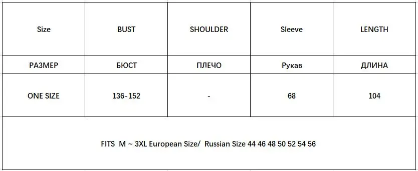 Поскольку размер отличается от страны, пожалуйста, учитывайте не только размеры, но и данные измерений. Бюст очень важен для вас. Это наше ручное измерение, поэтому может быть погрешность в 2-3 см. Надеемся на ваше понимание.