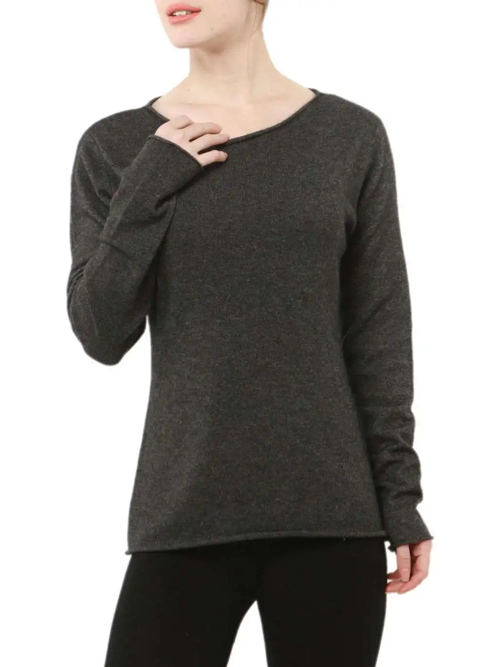 Кашемировый свитер, женский шерстяной пуловер с круглым вырезом, приталенные вязаные однотонные Топы с длинным рукавом, женский свитер