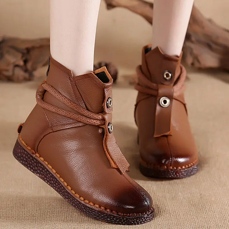 Осенние винтажные женские ботинки OUKAHUI ручной работы из натуральной кожи, женские зимние мягкие теплые повседневные ботинки на плоской подошве с круглым носком 2020