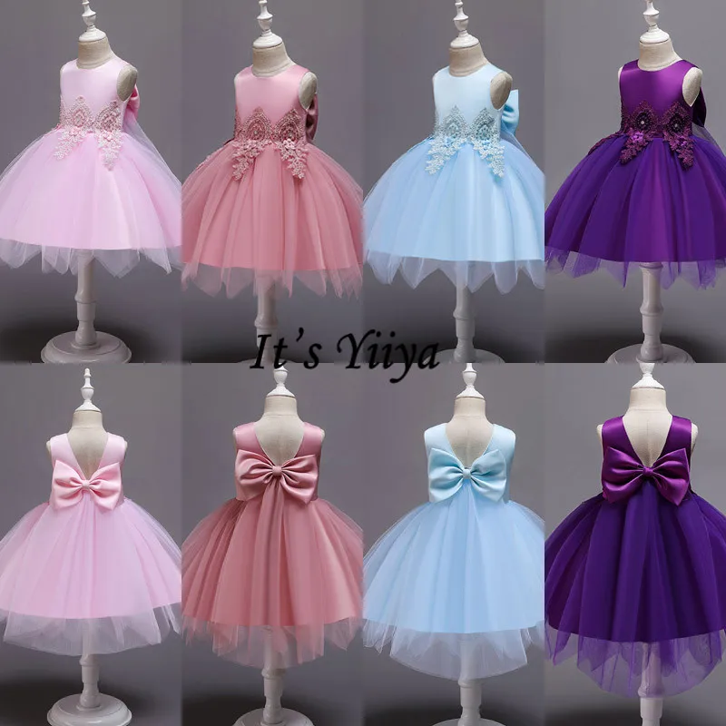 It's Yiiyaплатье с цветочным узором для девочек, кружевное детское рождественское бальное платье с цветочной аппликацией короткие платья для первого причастия 183