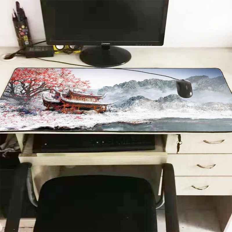 Коврик для мыши XGZ Landscape, большой размер, замок с боковым горным водопадом, красивый вид, Настольный коврик для ноутбука, резиновый Универсальный нескользящий коврик