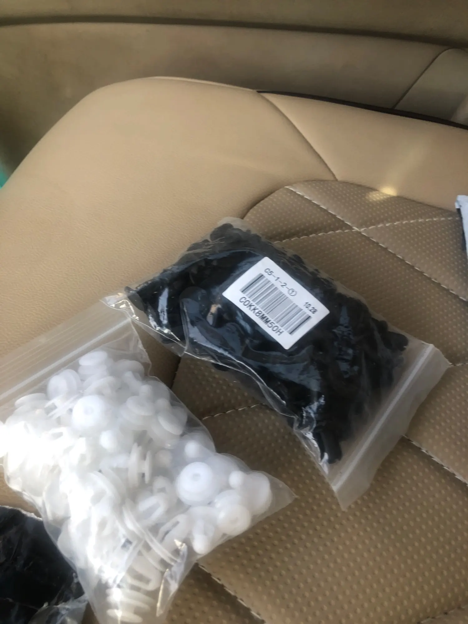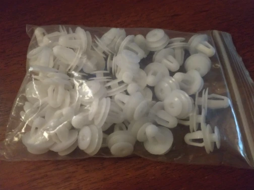 доставка быстрая 2 недели до Алтая. фото не будет так как клипсы стоят на машине. качество класс, мягкий пластик, крепкий, при загебании не ломаются. края не лопаются. В количестве есть сомнения, я не считал , но закончились быстро! Для Nissan Wingroad y11 идеально подошли!