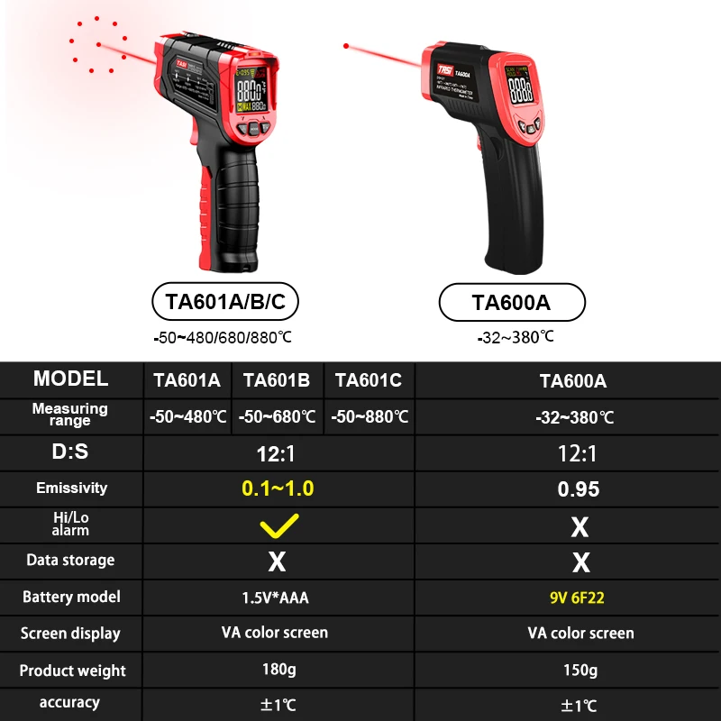 TASI 880680480380 градусов Цельсия цветной дисплей высокой температуры инфракрасный лазерный термометр
