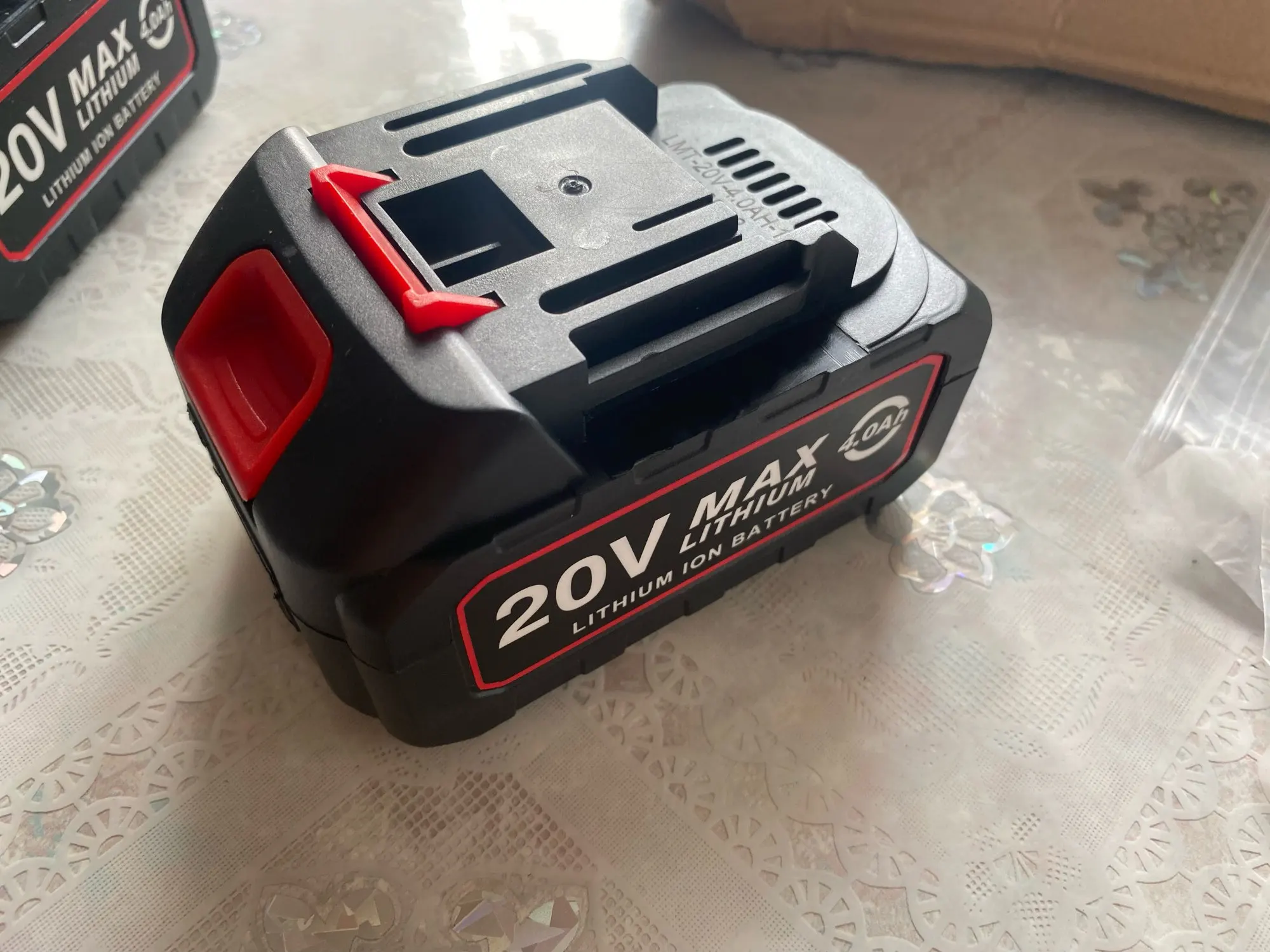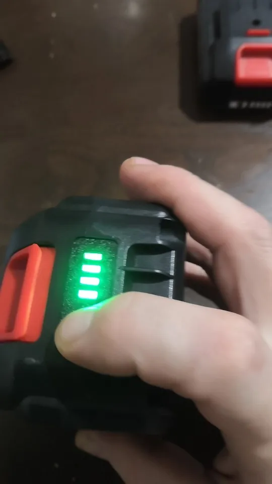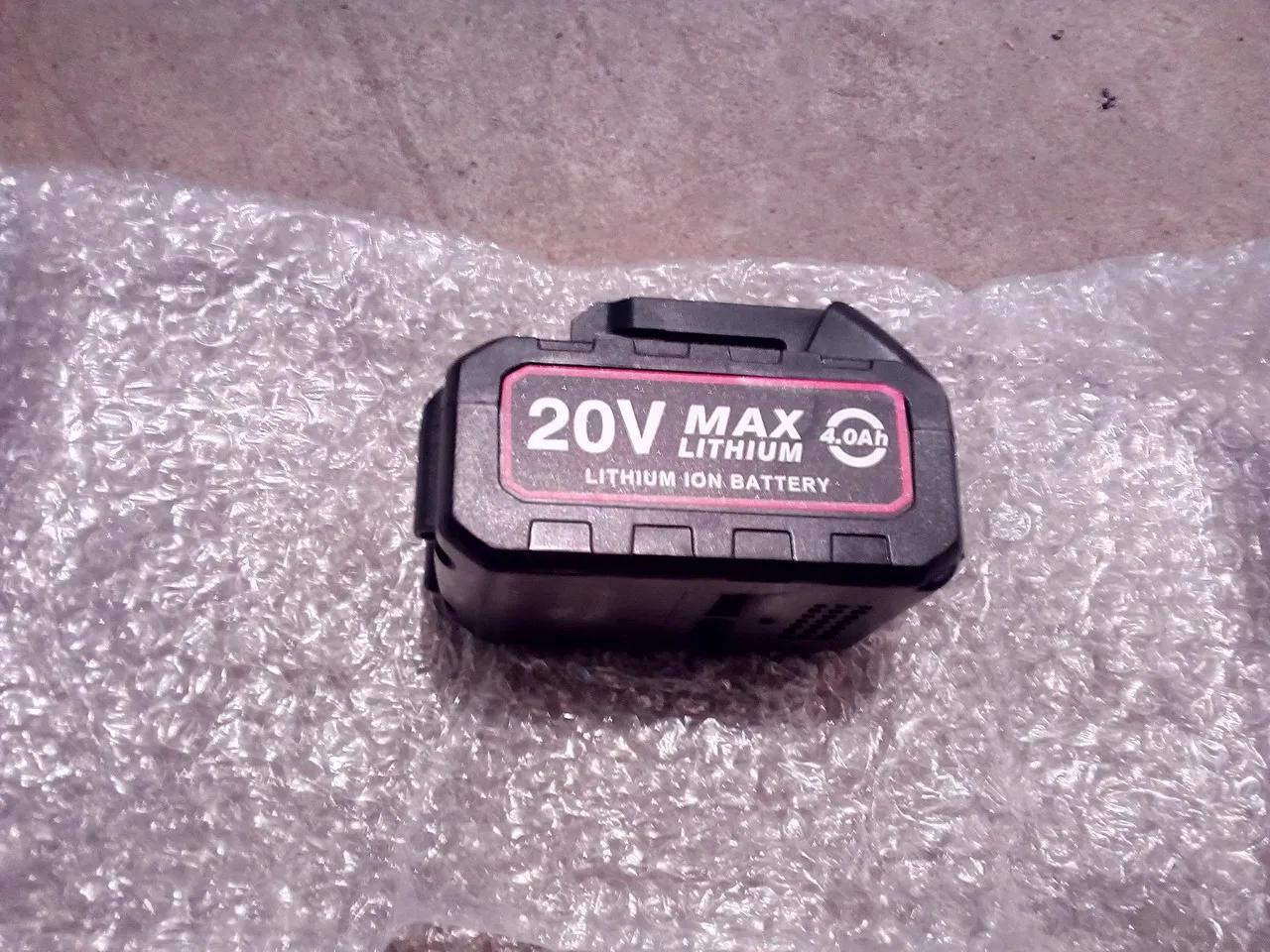 Доставили быстро. Получил заряженный на 80%. Аккумулятор имеет индикацию уровня заряда. На корпусе есть гравировка: LMT-2OV-2.0AH-5C* A-06-27. Болгарку 800Вт без нагрузки крутит, но не долго. Покупкой доволен.