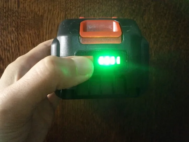 Товар был упакован в пупырчатой плёнки, без коробки, без почтового пакета. Аккумулятор хороший, пришел не полностью заряжен. Брали аккумулятор емкостью 20V-4.0Ah-(10C). На аккумуляторе имеется индикатор заряда, гарантийная наклейка з надписью Wosal. Посмотрим сколько прослужит.