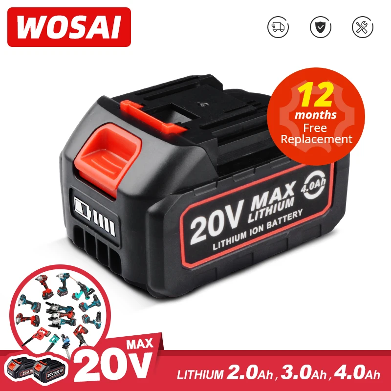 WOSAI аккумуляторная батарея 12 В 20 в литий-ионная серия Аккумуляторная дрельпилаотверткагаечный ключугловая шлифовальная машина бесщеточный электроинструмент