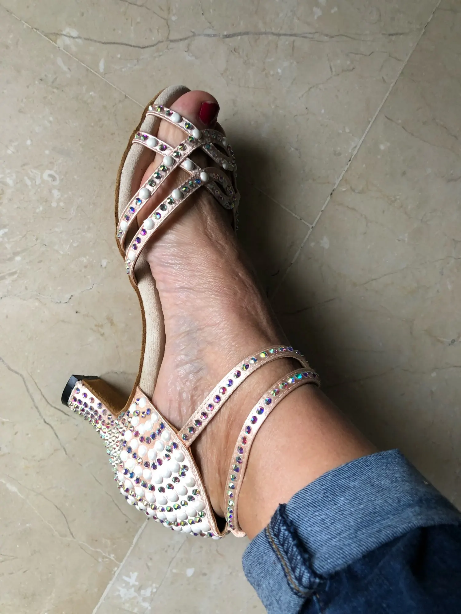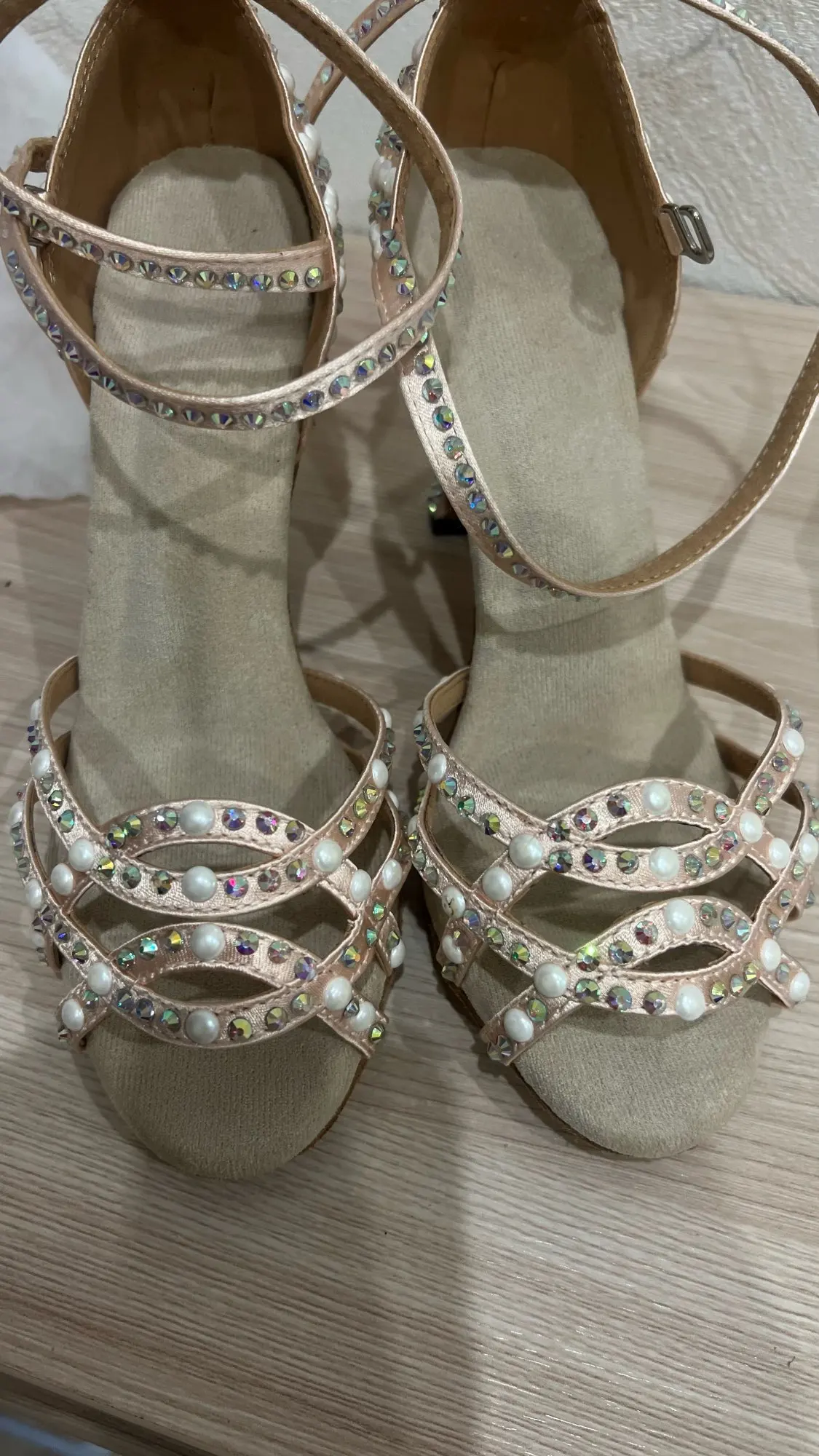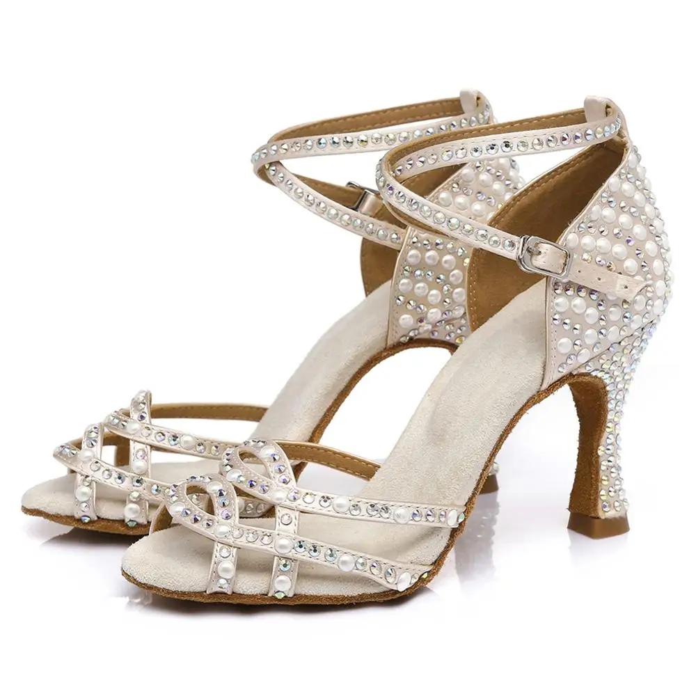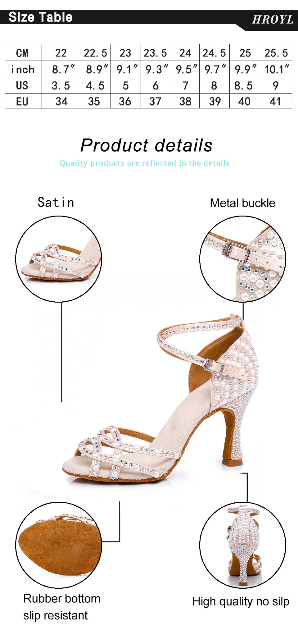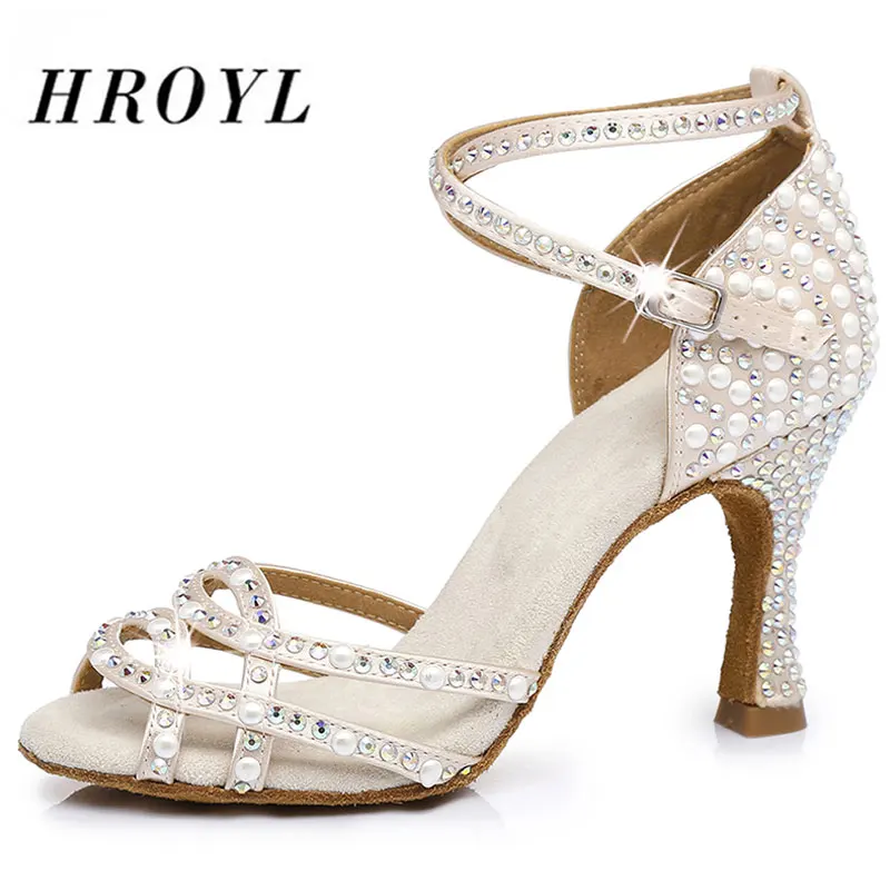 HROYLЖенская обувь для латинских танцев; Женские танцевальные сандалии для девочек; Танцевальные сандалии для сальсы и самбы; Стразы; Пикантные вечерние туфли на каблуке 567.58.591