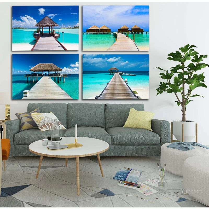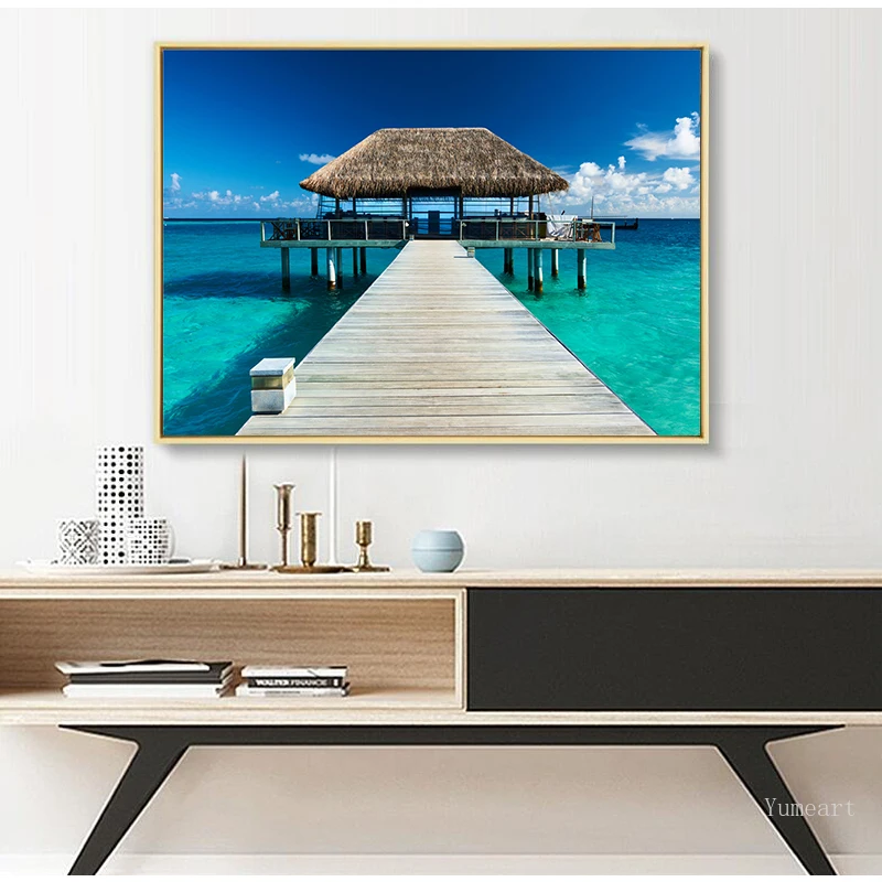 Современное голубое небо Мальдивские Острова Средиземноморский вышивка морской пейзаж холст с печатью постера арт Настенная картина без рамки Гостиная