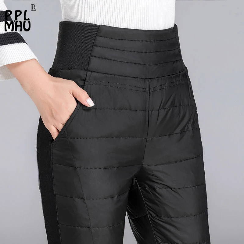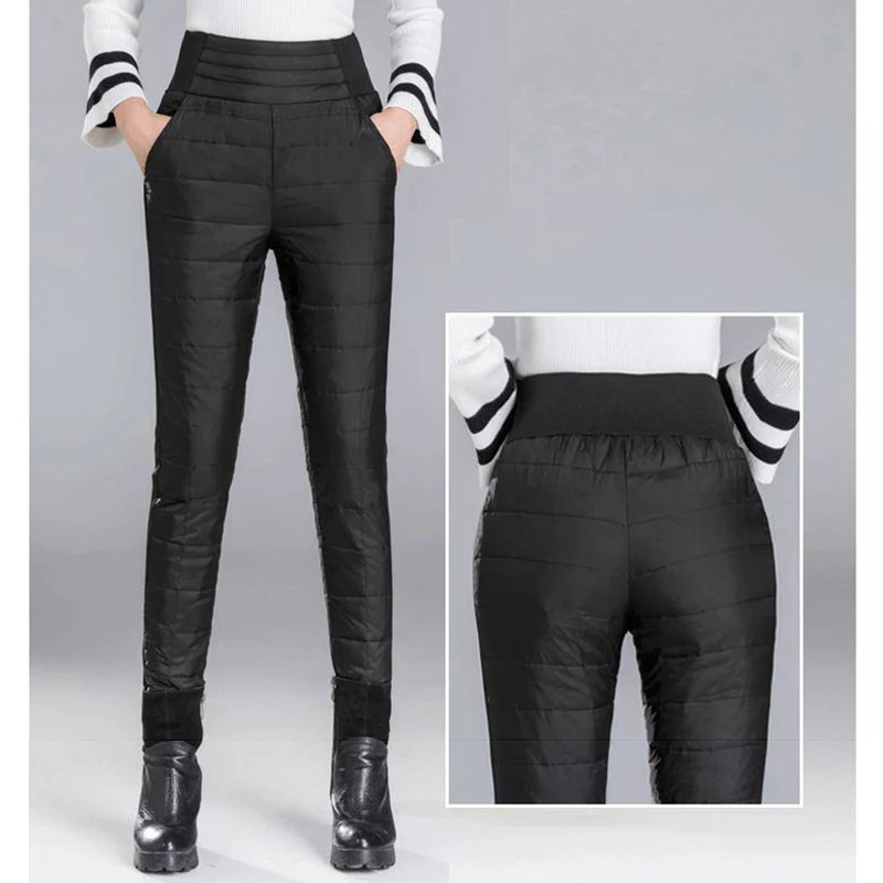 Утепленные брюки-леггинсы с вельветовой подкладкой, с высокой талией, зимние, XL, теплые, на утином пуху, уличные, эластичные, теплые