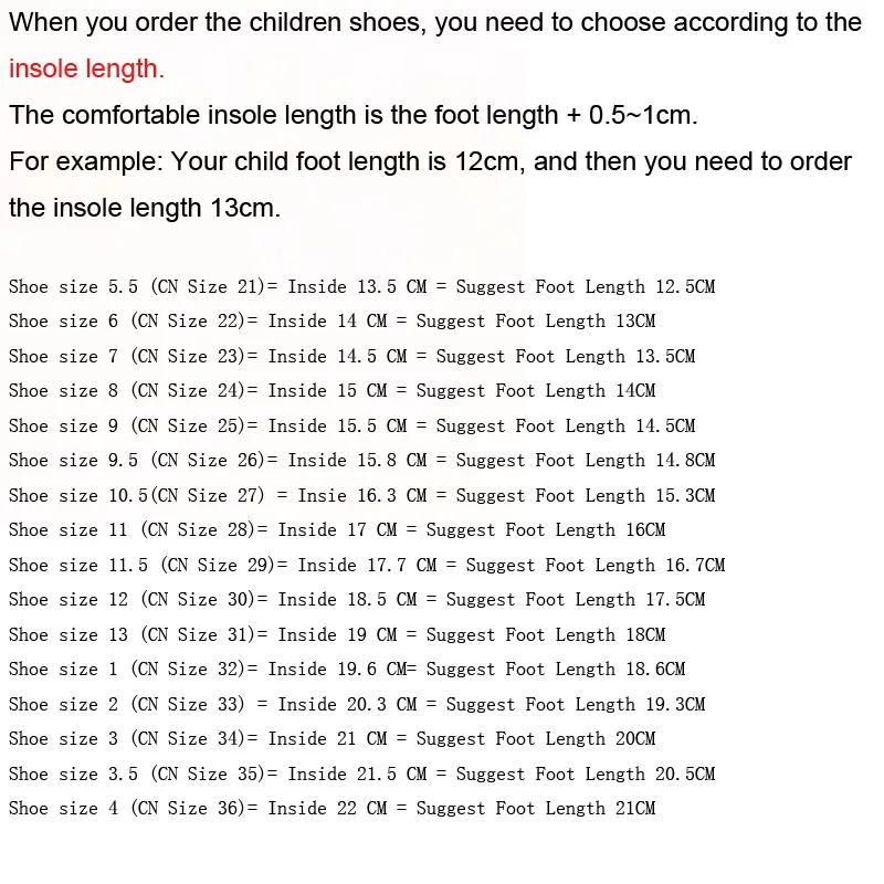 Размер обуви 1 = Размер 32 CN = длина стельки 19,6 см