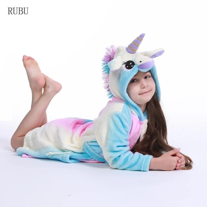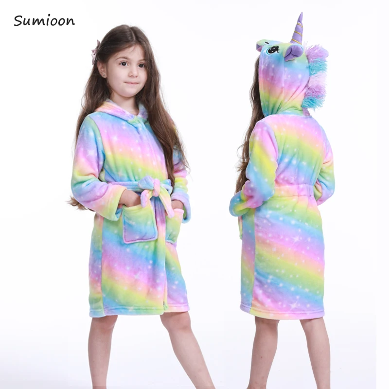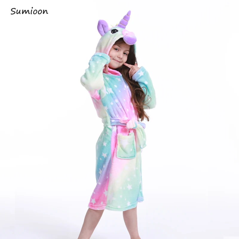 Детская зимняя Халат с капюшоном с изображением животных Единорог банный халат милые купальные халаты с капюшоном для детей, фланелевые пижамы, детские купальные халаты, халаты для мальчиков и девочек