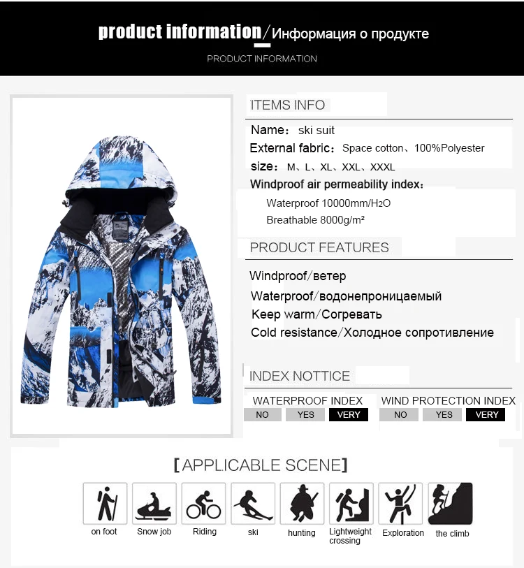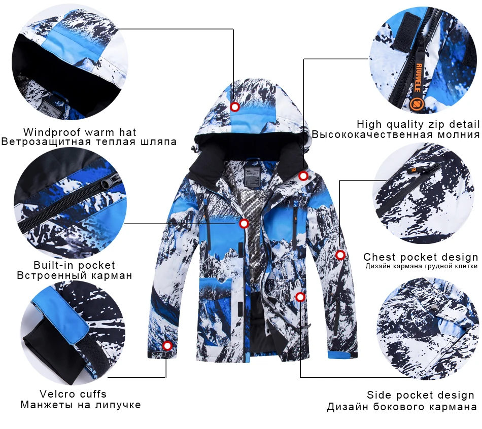 Новинка, зимний спортивный мужской лыжный костюм для улицы, комплект для катания на лыжах, камуфляжные теплые водонепроницаемые ветрозащитные мужские куртки и штаны для сноуборда