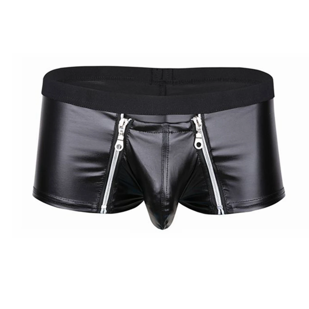 Мужские трусы-боксеры iiniim, из искусственной кожи, на молнии, с отделением для ракушек, сексуальная клубная одежда для геев, нижнее белье, сексуальные трусики