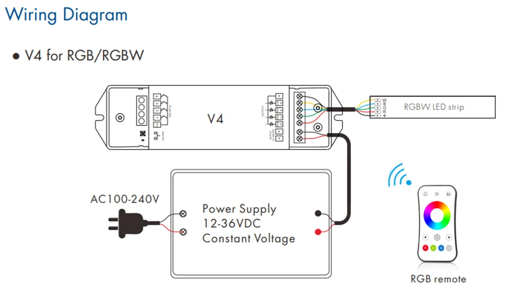 Светодиодный пульт дистанционного управления RGBW, 12 В, 24 В, 36 В, постоянный ток, 2,4 ГГц, беспроводной Радиочастотный пульт дистанционного управления, 4-канальный умный пульт дистанционного управления Wi-Fi для светодиодных лент RGB RGBW V4