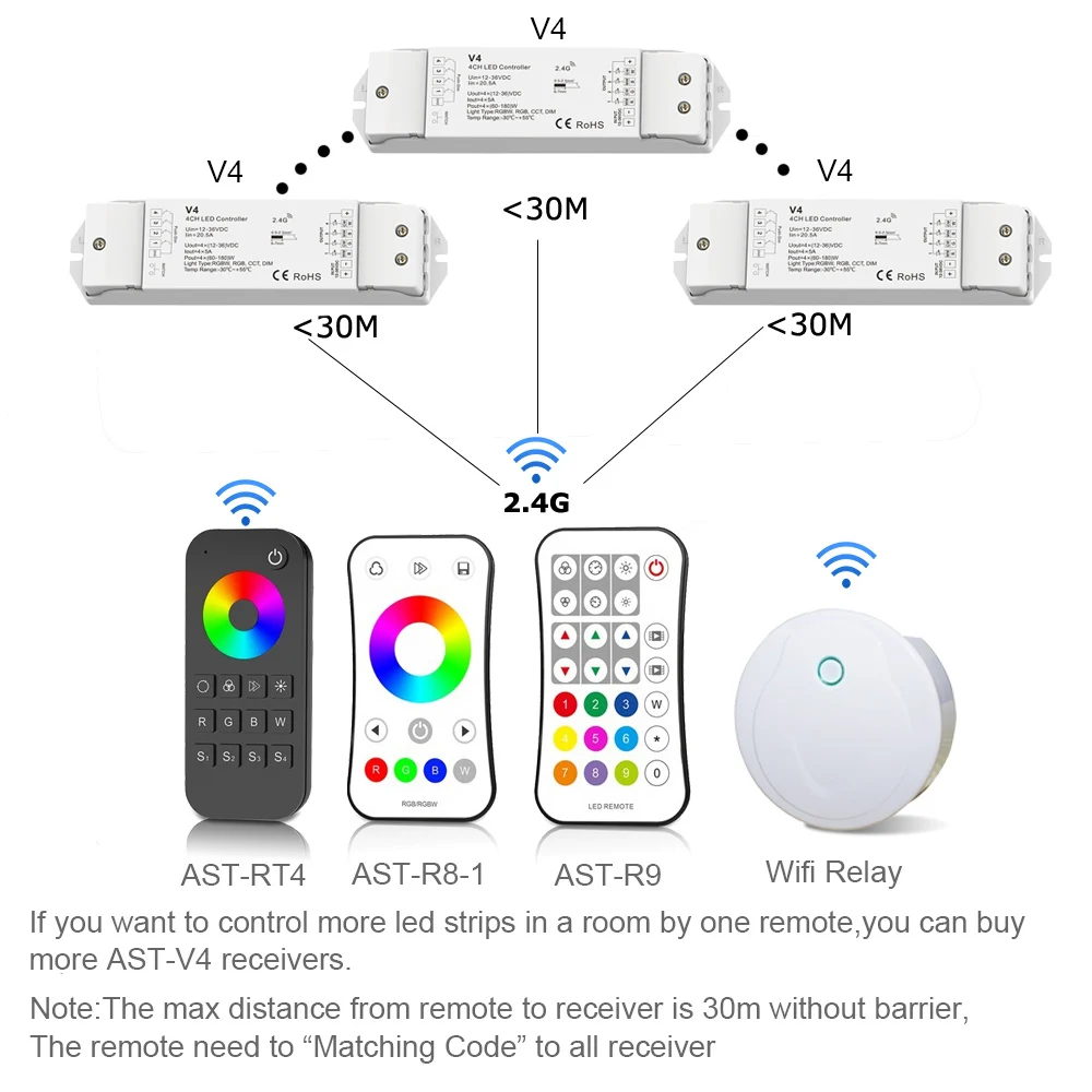 ● Совместимость с одноцветным, двухцветным и RGB/RGBW пультом ДУ Skydance 2,4G.