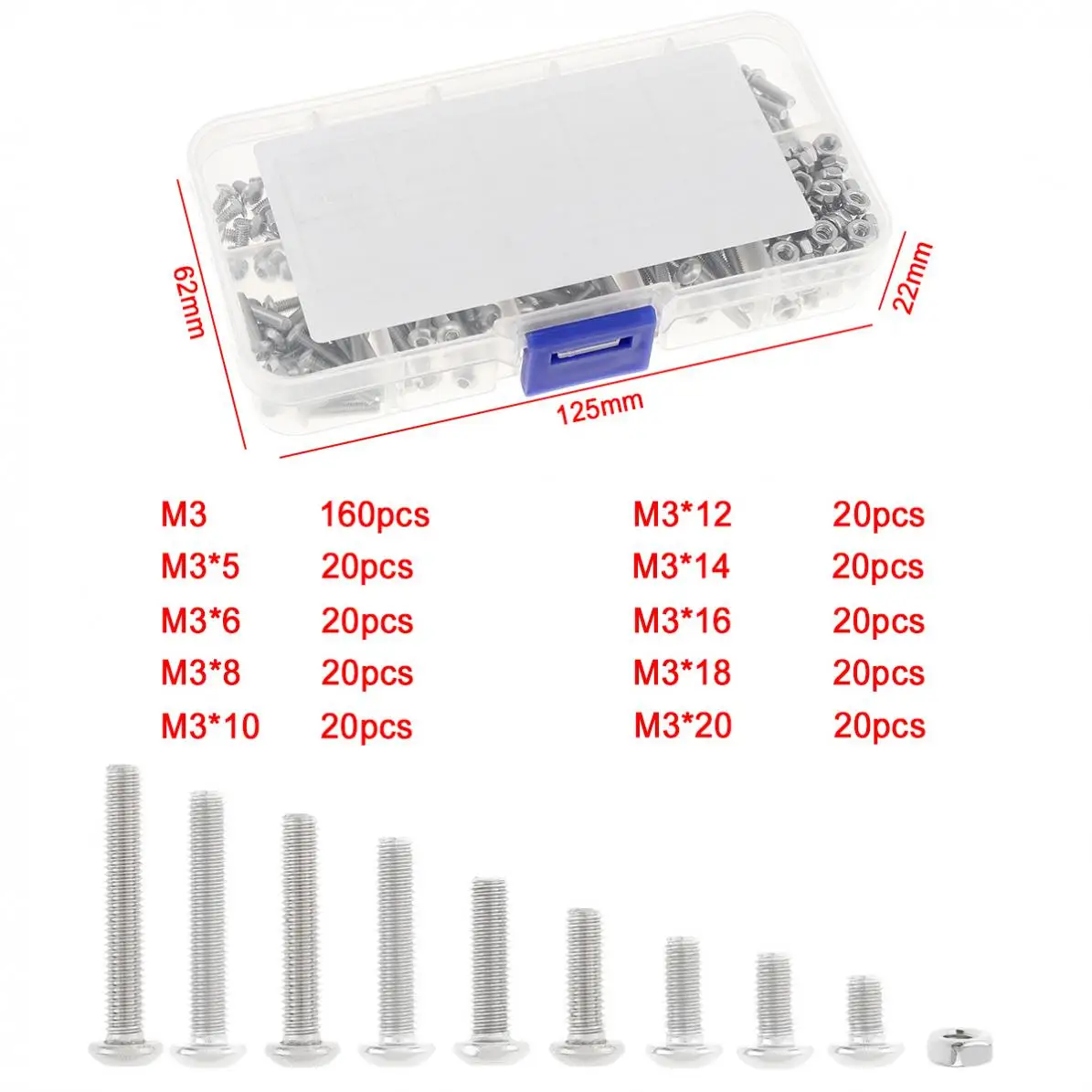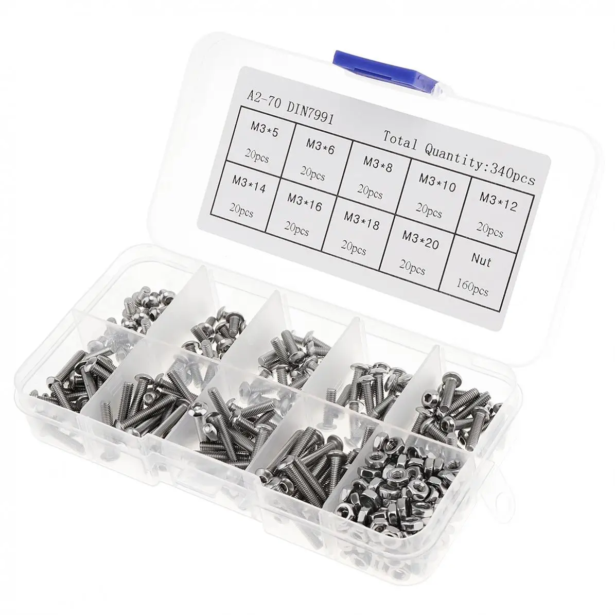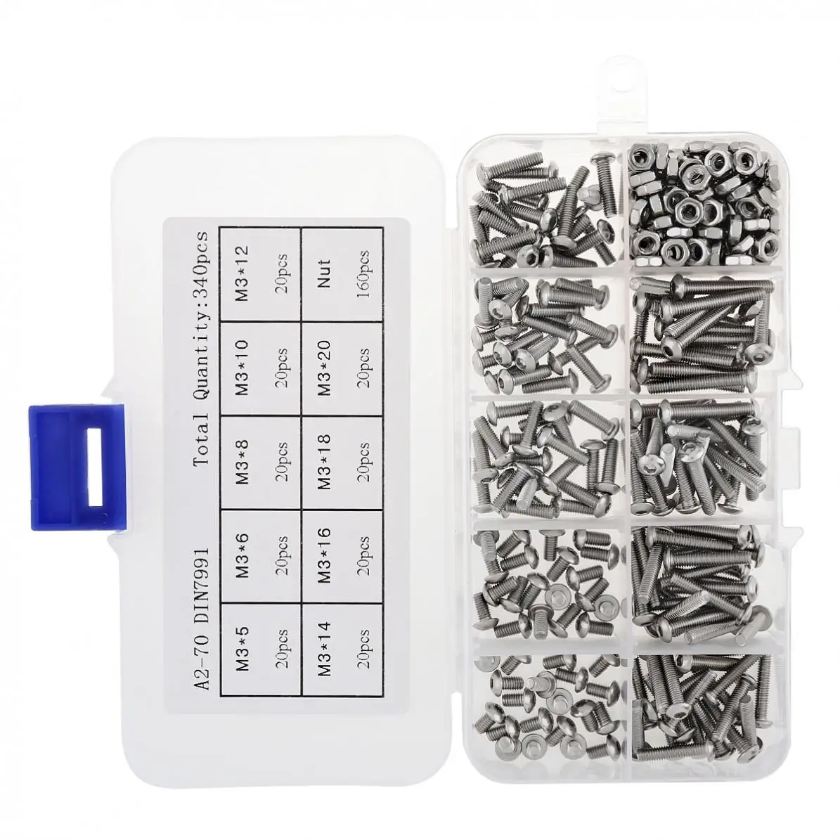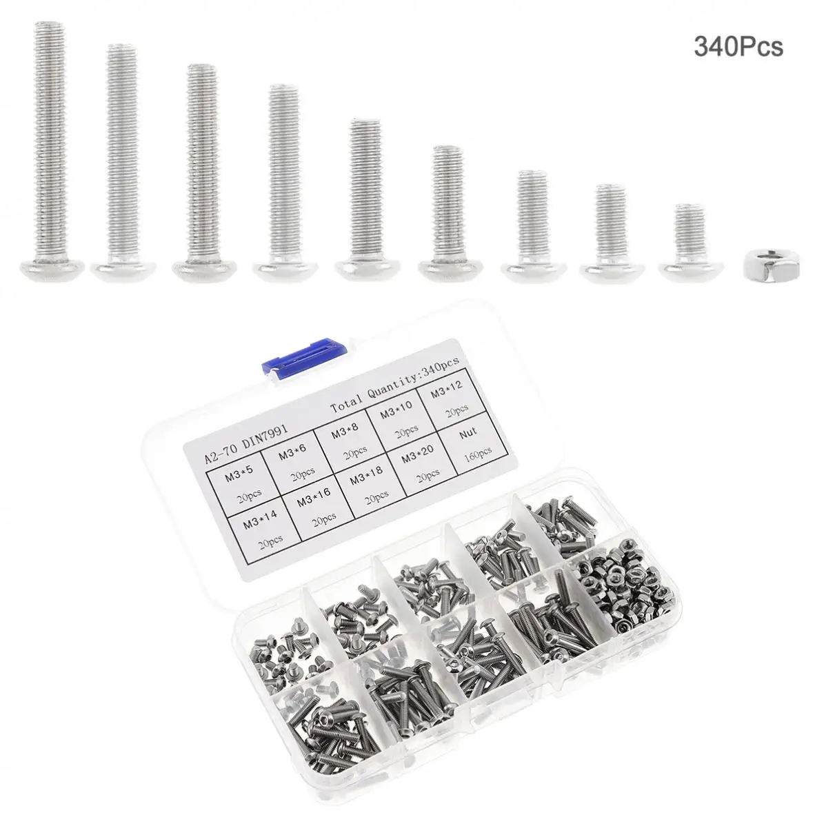 340 шт.лот нержавеющая сталь M3 полукруглая головка шестигранный винт болт гайка набор инструментов для ремонта