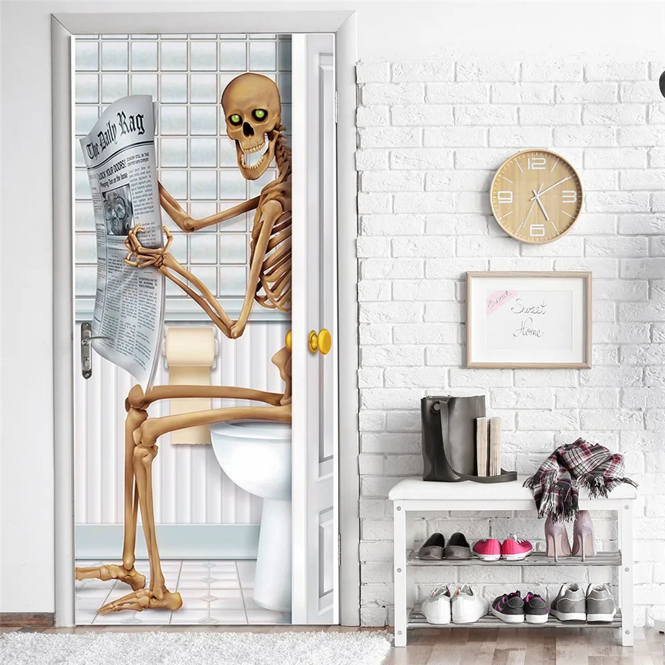 Череп Хэллоуин украшения двери наклейки 3D ванная самоклеющиеся обои для дверей Съемный ПВХ постер DIY обновленная настенная дека