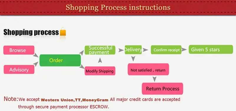 Время подготовки заказа Нам нужно 3-6 рабочих дней, чтобы подготовить заказы из-за наших многочисленных заказов каждый день. Отзывы О нас У нас есть наша фабрика и команда дизайнеров. У нас есть наш бренд "Золотой тропер" Мы можем предложить вам оптовую цену, если вы предпочитаете приобрести товары оптом Доставка Обычно ваши посылки отправляются в течение 2-3 дней, если Товары в наличии, если их нет в наличии, Он должен быть отправлен около 5 рабочих дней. Если вы срочно получаете заказы, пожалуйста, выберите Экспресс-методы, но, пожалуйста, Оплатите стоимость доставки. Если вы не получили заказ вовремя, пожалуйста, свяжитесь с нами как можно скорее. Отзывы Мы будем признательны за сотрудничество с вами, если вы удовлетворены нашим обслуживанием, Пожалуйста, оставьте нам положительный отзывы и 5 звезд, заранее спасибо. Гарантия Мы принимаем возврат за неудовлетворительные товары. Пожалуйста, сначала свяжитесь с нами, чтобы сообщить о дефектных продуктах в течение 30 дней после получения. Возврат будет произведен после того, как мы получим ваши возвращенные товары. Пожалуйста, Оплатите стоимость обратной доставки.
